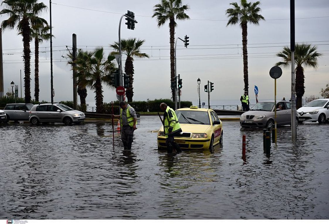 Συσσώρευση υδάτων στην Ποσειδώνος στο Παλαιό Φάληρο στο ρεύμα προς Πειραιά προκλήθηκε μετά από την έντονη βροχόπτωση.