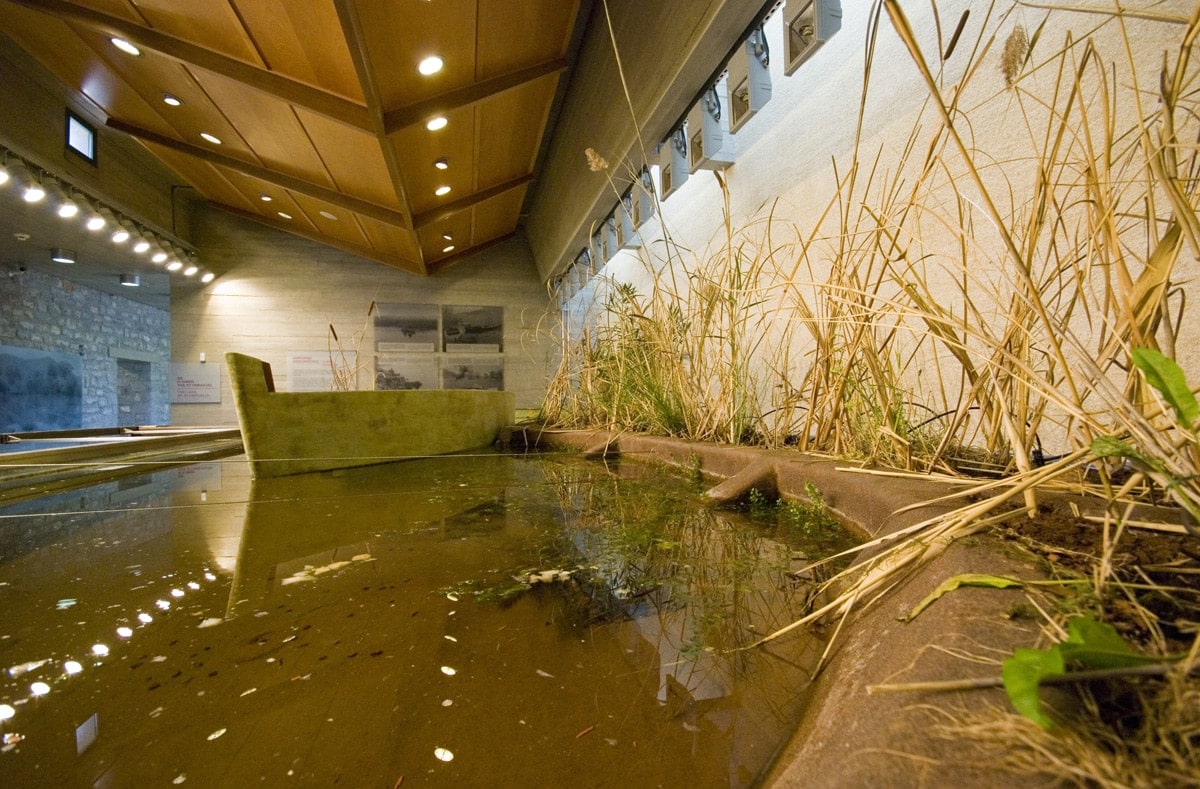 Στον εσωτερικό χώρο του Μουσείου Περιβάλλοντος Στυμφαλίας έχετε πρόσβαση σε ένα μοναδικό για τον ελληνικό χώρο έκθεμα: ανοιχτό ενυδρείο που αναπαριστά σε τομή τη λίμνη, με ζωντανά ψάρια και φυτά της περιοχής!