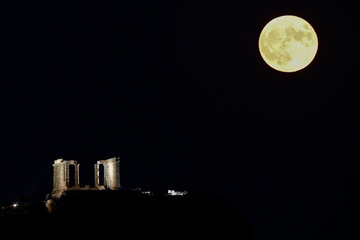 Η ανατολή της πανσελήνου στον ναό του Ποσειδώνα, στο Σούνιο