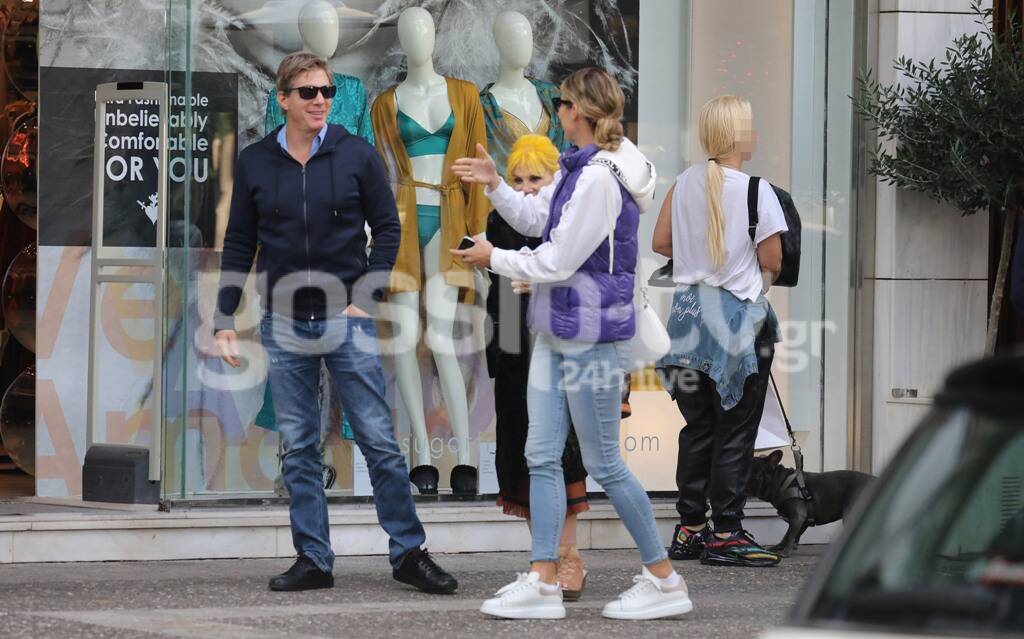 Οι τρεις τους ντυμένοι casual και σε πολύ καλή διάθεση, έδειξαν να απολαμβάνουν τη χειμωνιάτικη λιακάδα καθώς περπατούσαν σε κάποιον από τους κεντρικότερους δρόμους της Γλυφάδας όπου και συνάντησαν λίγο αργότερα γνωστούς και φίλους. Συνομίλησαν μαζί τους, αντάλλαξαν τα νέα τους και ύστερα συνέχισαν τον περίπατό τους και τα ψώνια τους με την ίδια καλή διάθεση.