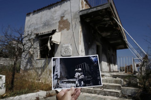 Ο φωτορεπόρτερ του Αθηναϊκού/Μακεδονικού Πρακτορείου Ειδήσεων Αλέξανδρος Βλάχος φτάνει σε έναν λόφο περίπου στη μέση του οικισμού του Νέου Βουτζά.