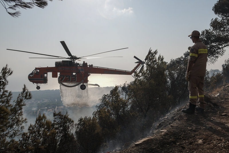 Με το πρώτο φως της ημέρας τα εναέρια μέσα πυρόσβεσης βρέθηκαν στο μέτωπο της φωτιάς