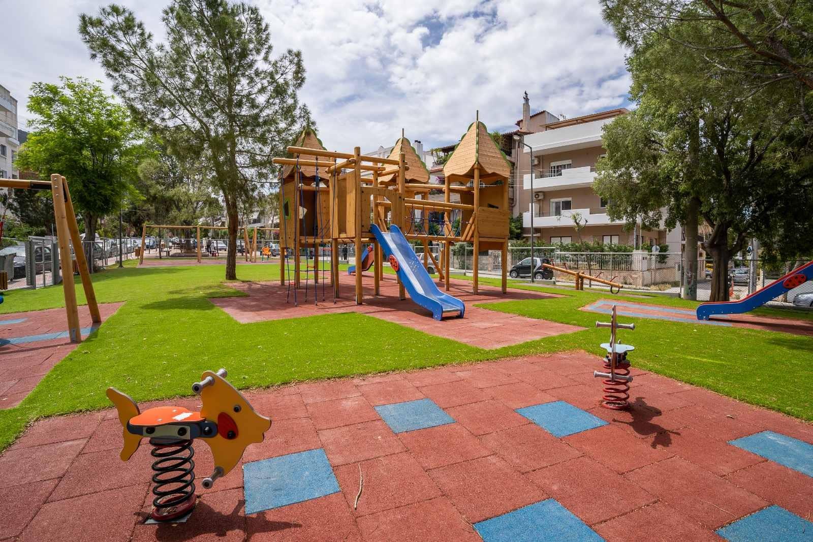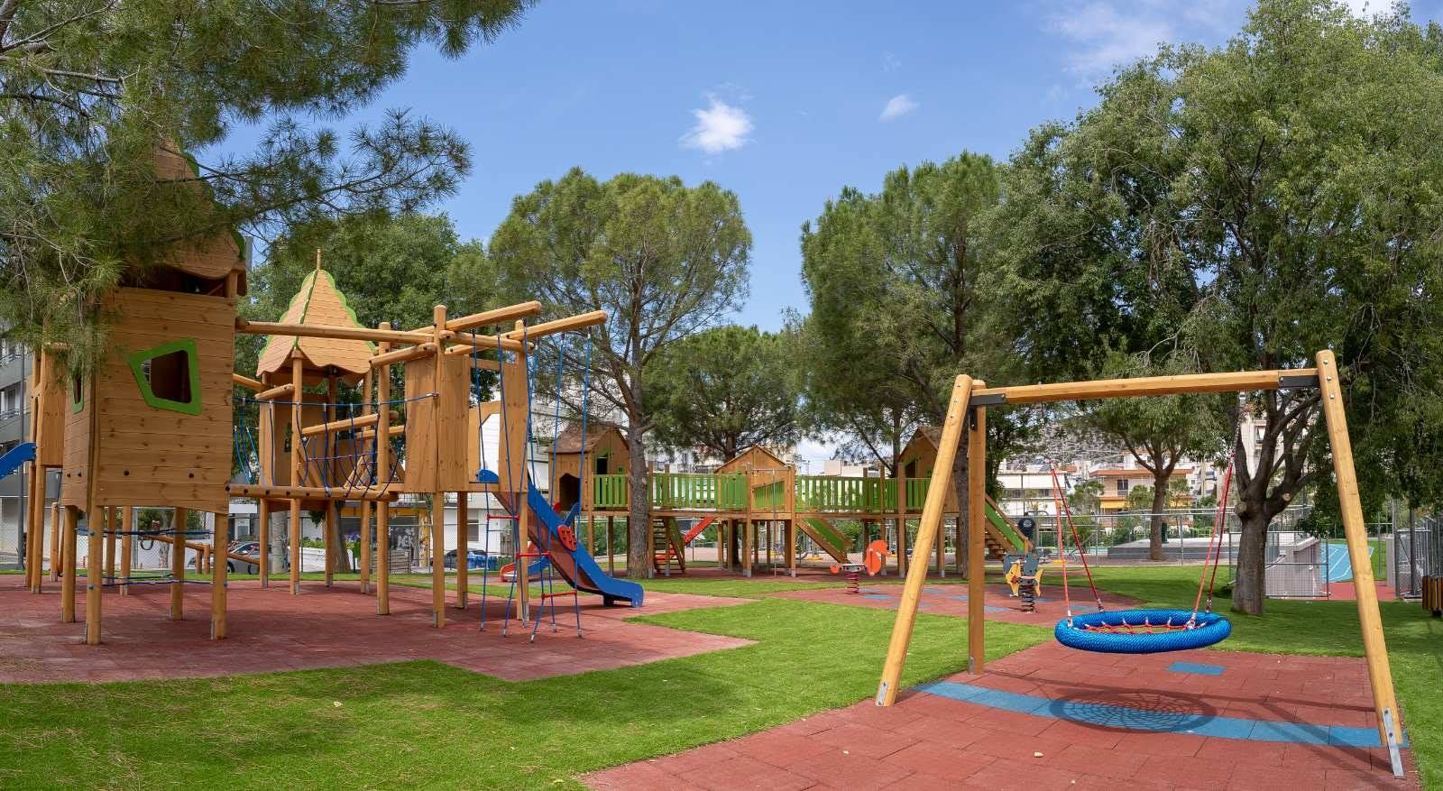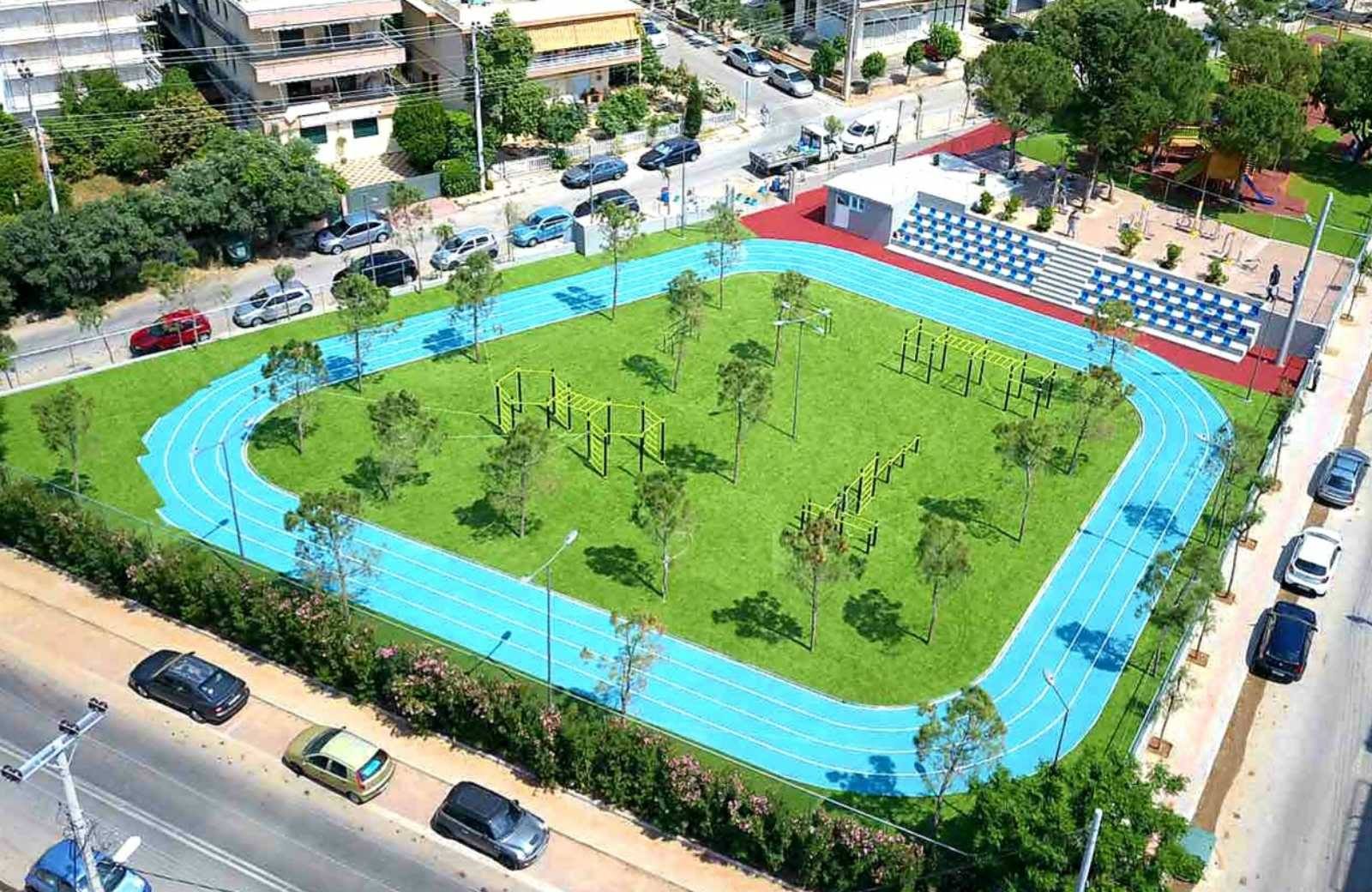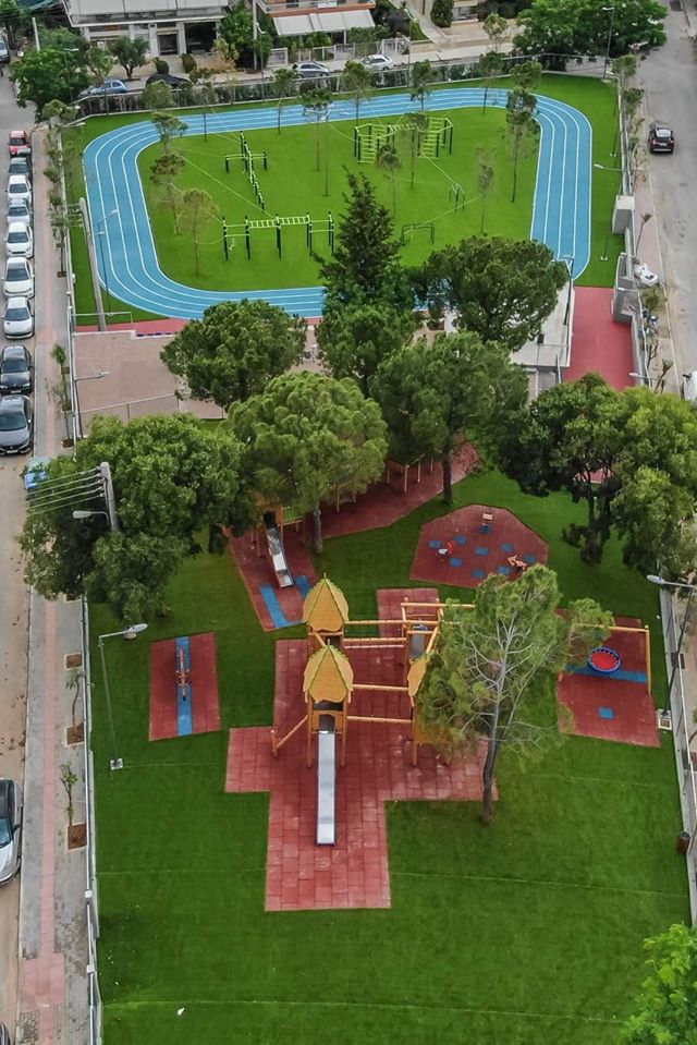 Πολυχώρος άθλησης με τελευταίας γενιάς ταρτάν και υπαίθρια όργανα γυμναστικής, παιδότοπος (θα ανοίξει όταν επιτραπεί), καθιστικά, νέος φωτισμός, νέα μεγάλα δέντρα κι άλλα πολλά, σε μια σύγχρονη εγκατάσταση για μικρούς και μεγάλους.