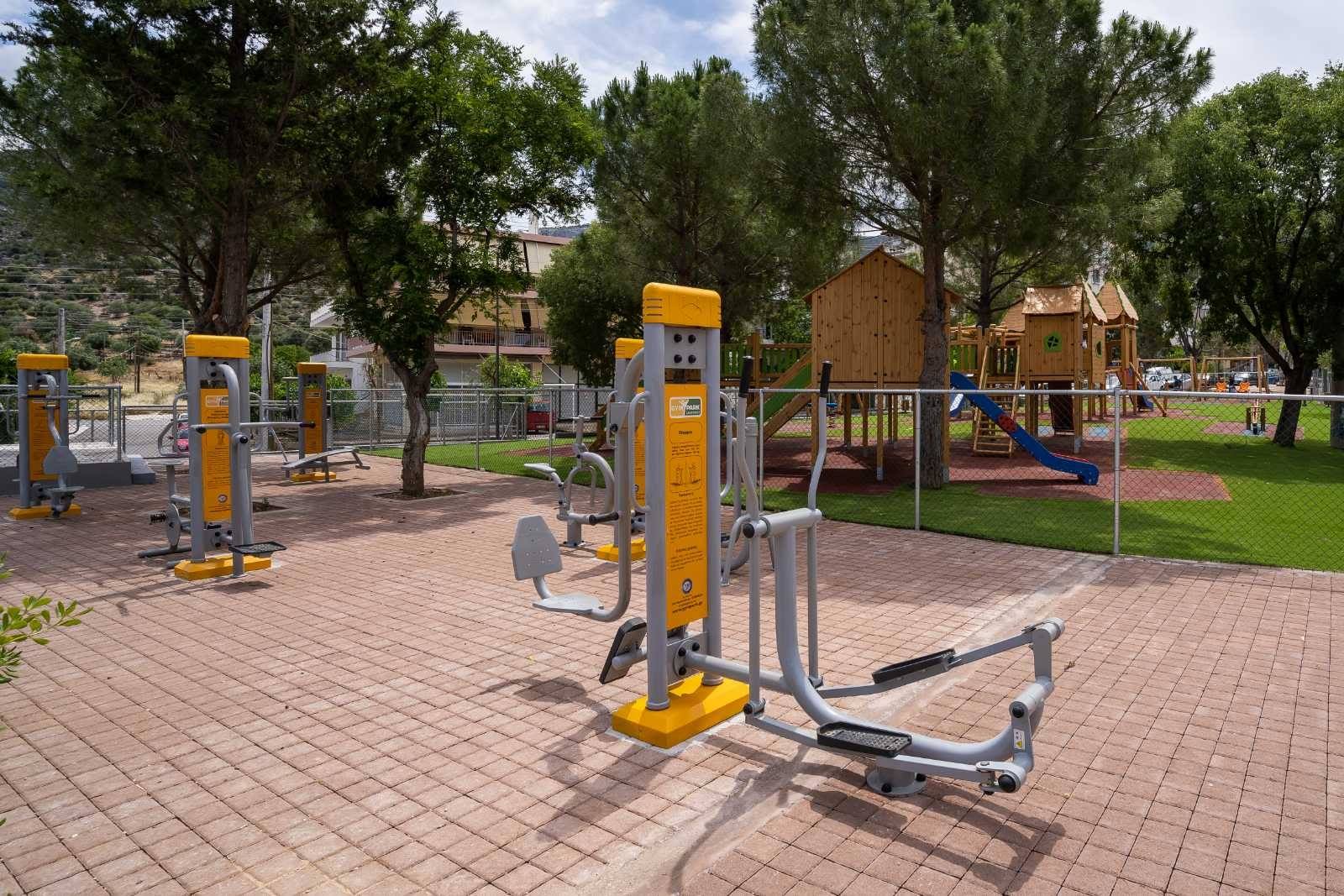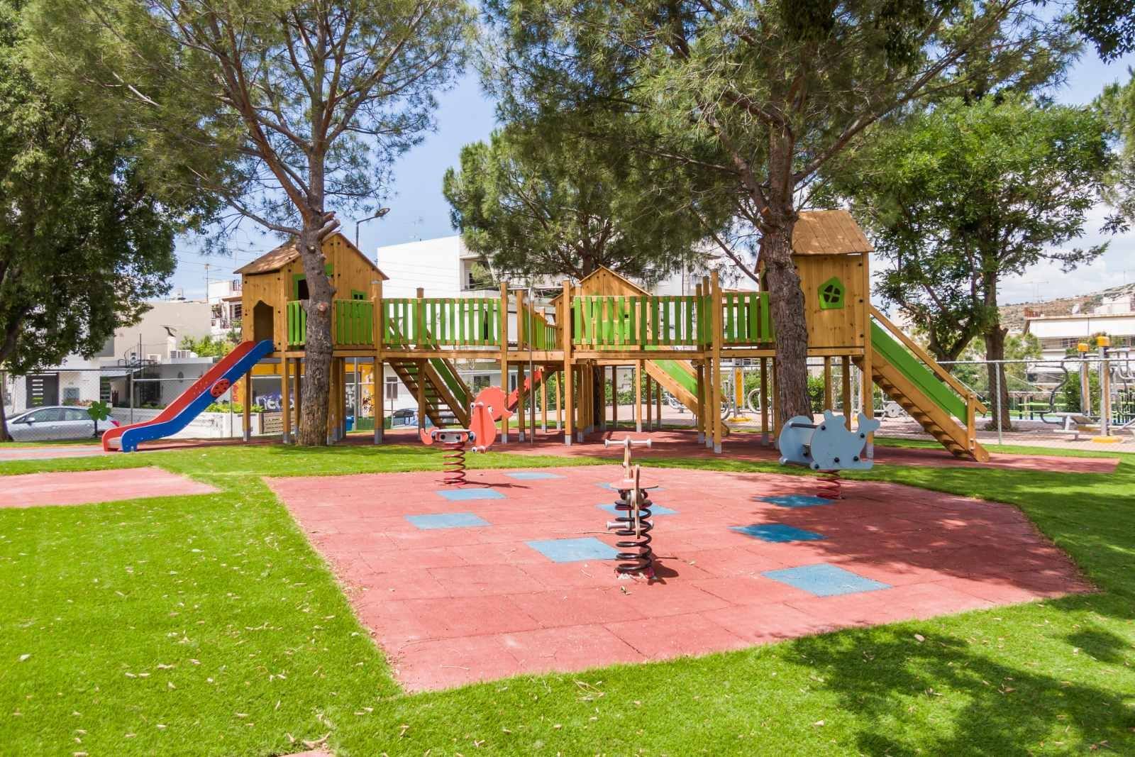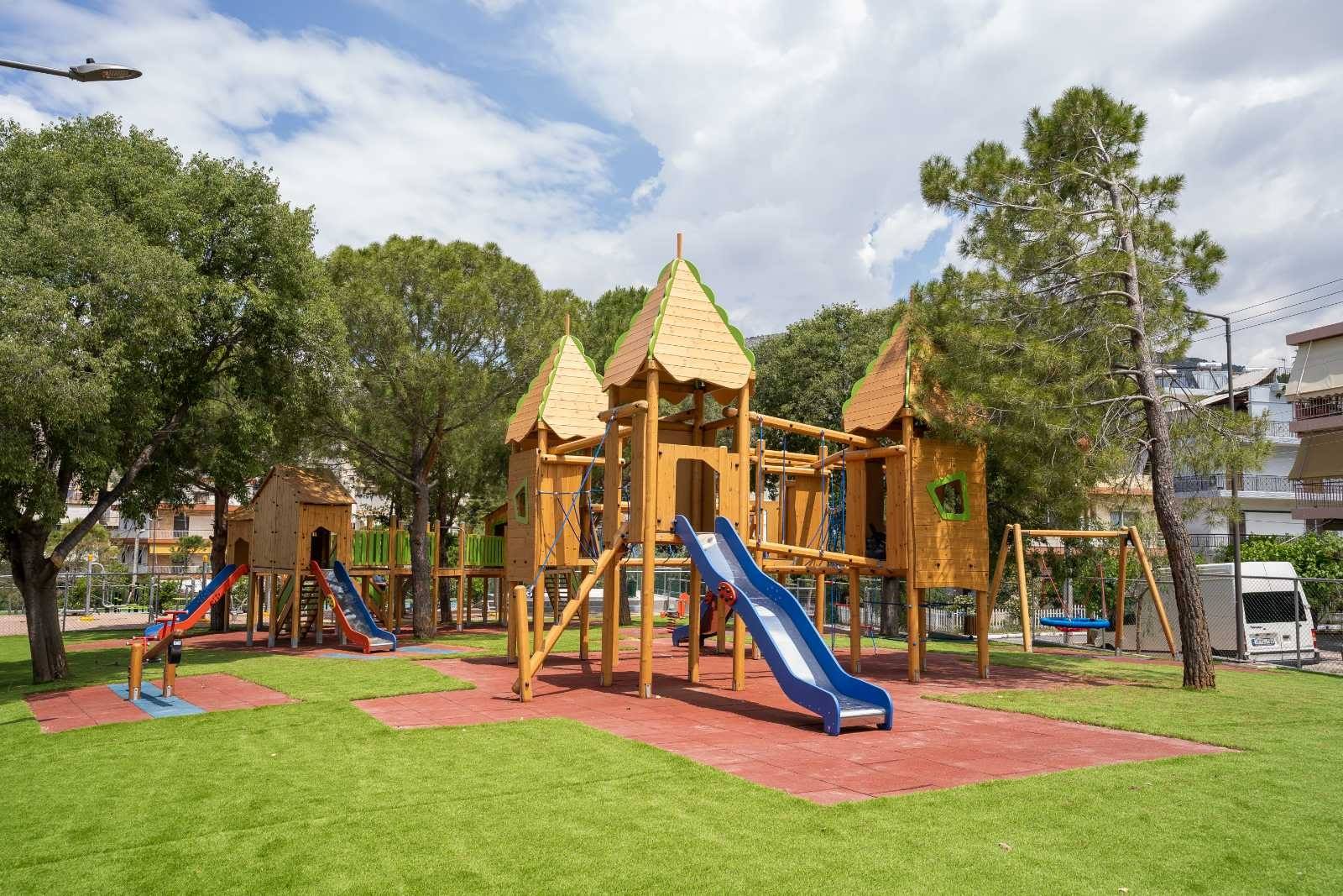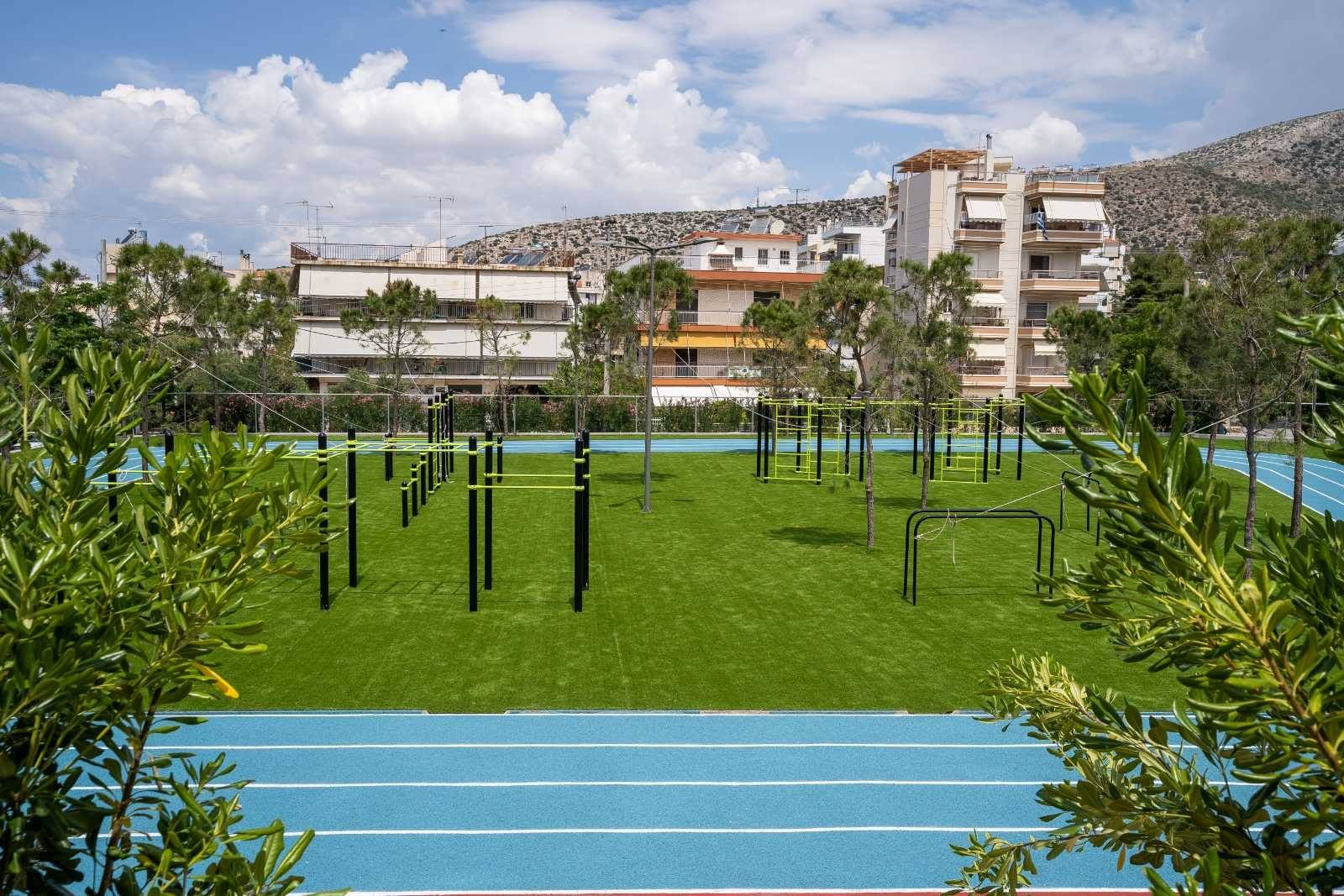 Πολυχώρος άθλησης με τελευταίας γενιάς ταρτάν και υπαίθρια όργανα γυμναστικής, παιδότοπος (θα ανοίξει όταν επιτραπεί), καθιστικά, νέος φωτισμός, νέα μεγάλα δέντρα κι άλλα πολλά, σε μια σύγχρονη εγκατάσταση για μικρούς και μεγάλους.