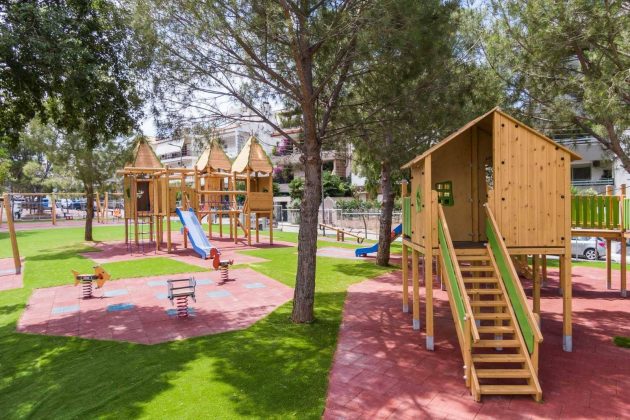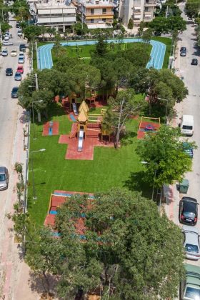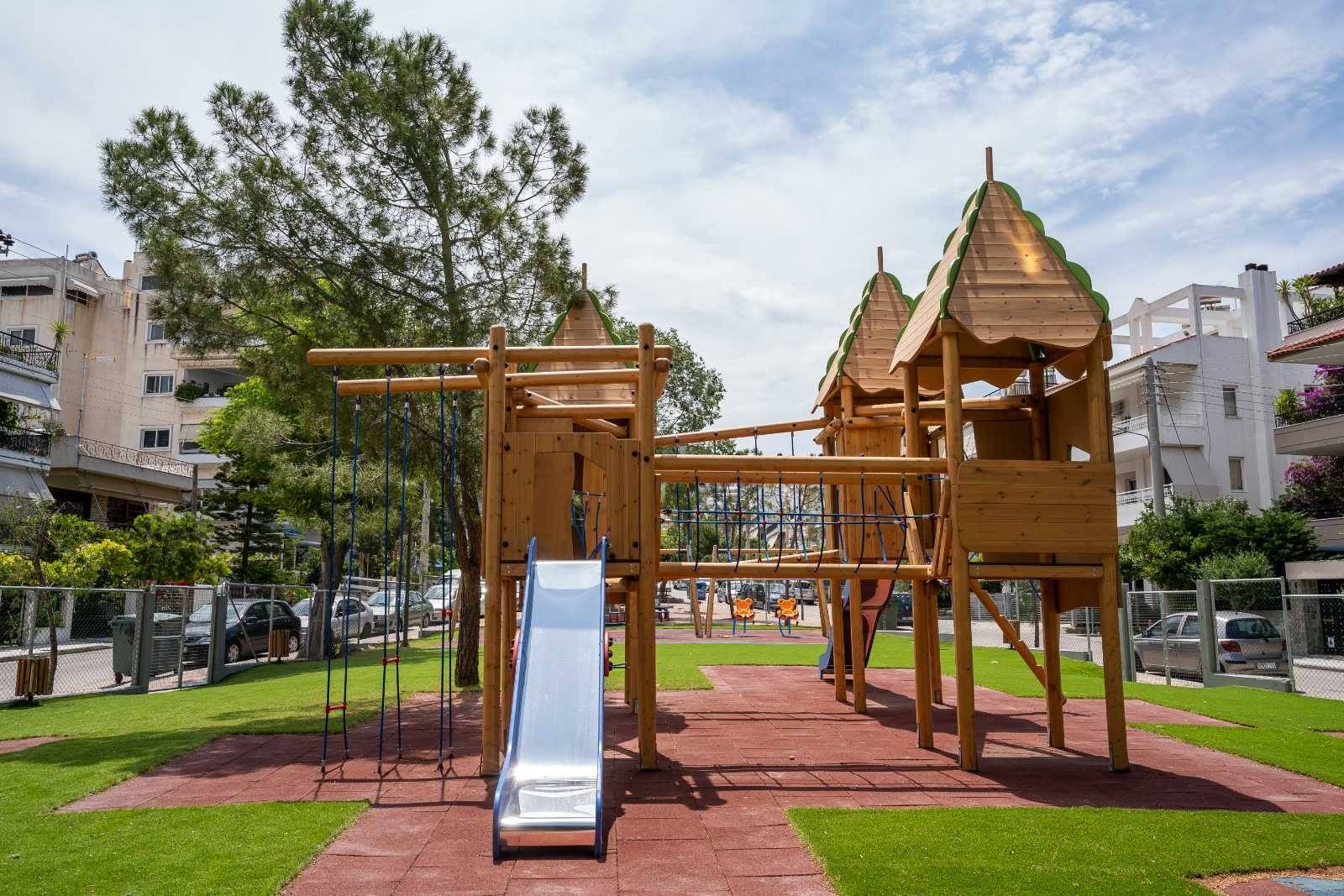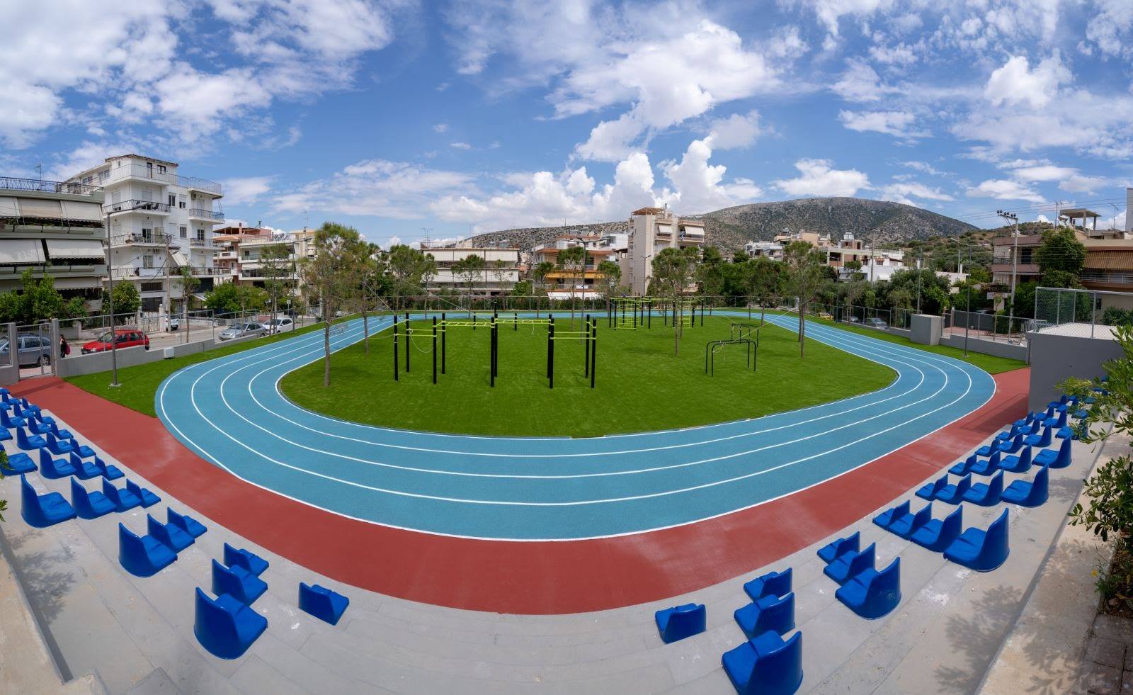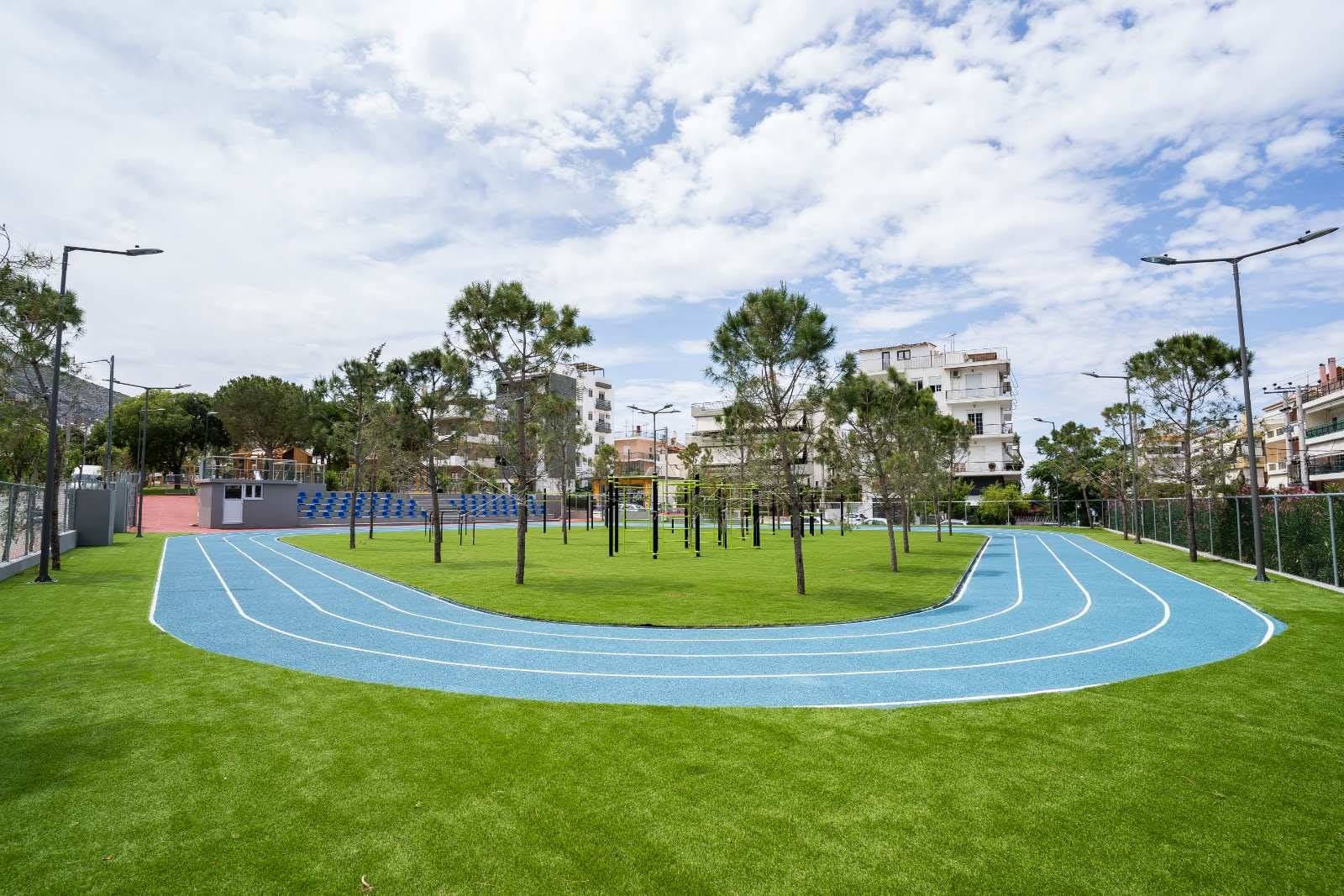 Πολυχώρος άθλησης με τελευταίας γενιάς ταρτάν και υπαίθρια όργανα γυμναστικής, παιδότοπος (θα ανοίξει όταν επιτραπεί), καθιστικά, νέος φωτισμός, νέα μεγάλα δέντρα κι άλλα πολλά, σε μια σύγχρονη εγκατάσταση για μικρούς και μεγάλους.