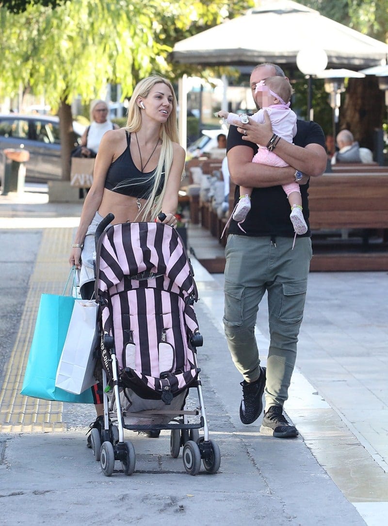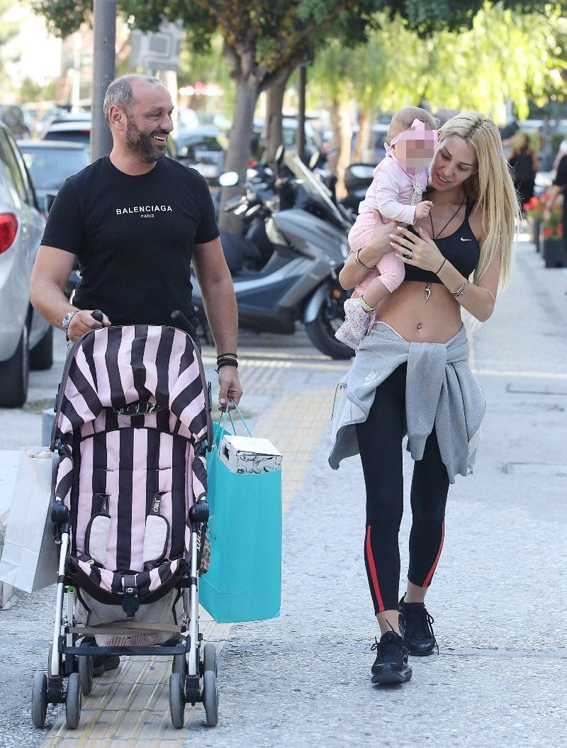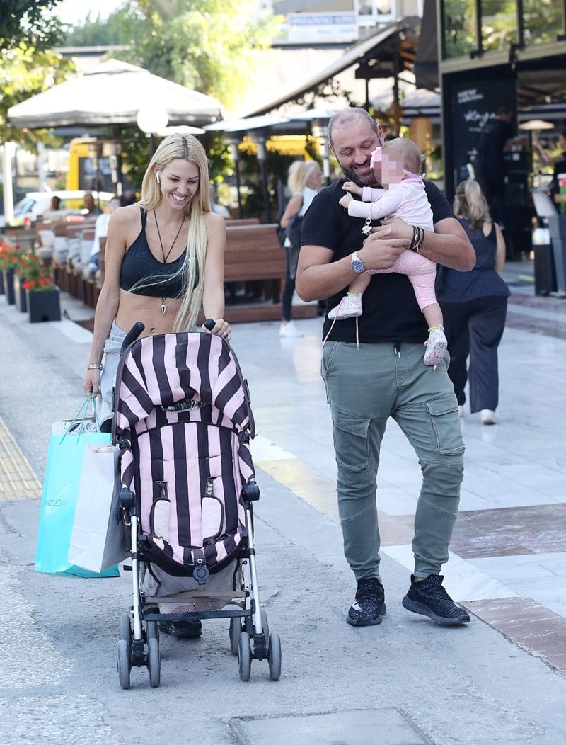 Λίγες ημέρες μετά τον γάμο τους και τη βάπτιση της μικρής Ειρήνης στη Μύκονο η οικογένεια εθεάθη στο κέντρο της Γλυφάδας να κάνει τις βόλτες στα μαγαζιά.