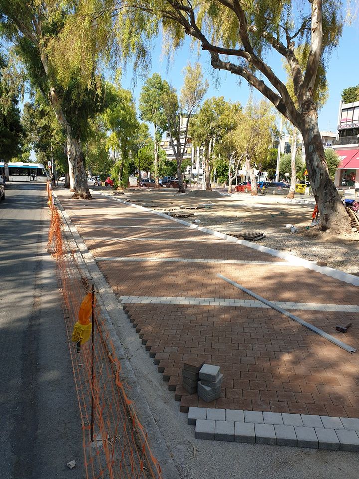 Η ανακατασκευή ήδη ξεκίνησε: Νέες θέσεις στάθμευσης περιμετρικά της νησίδας, που θα «αδειάσει» στο κέντρο από αυτοκίνητα, θα ανακαινιστεί πλήρως, θα αποκτήσει νέο φωτισμό, σύγχρονα καθιστικά, περισσότερα δέντρα, κυβόλιθους, ποιοτικά υλικά.