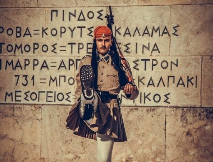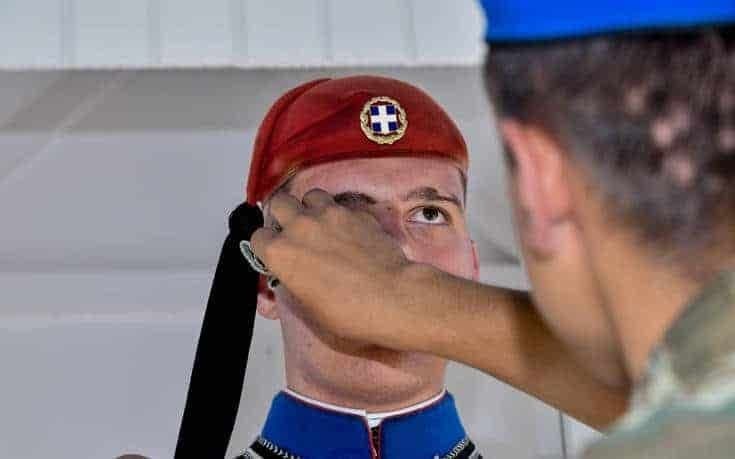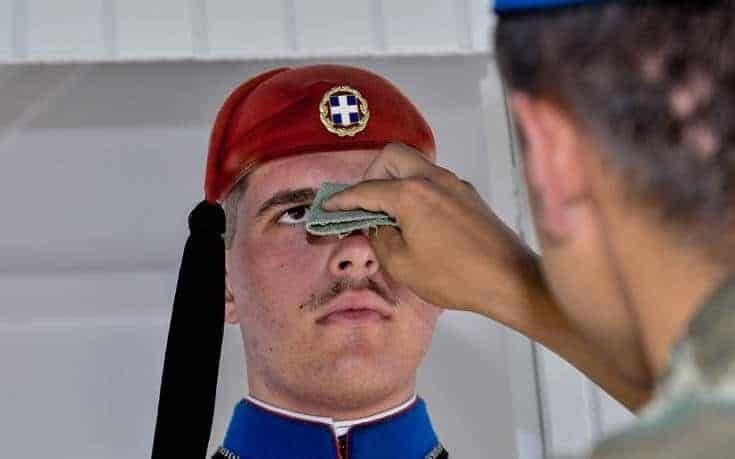 Δύσκολη είναι η κατάσταση και για τους εύζωνες μπροστά από τη Βουλή που αναγκάζονται να παραμένουν όρθιοι σε συνθήκες καύσωνα.