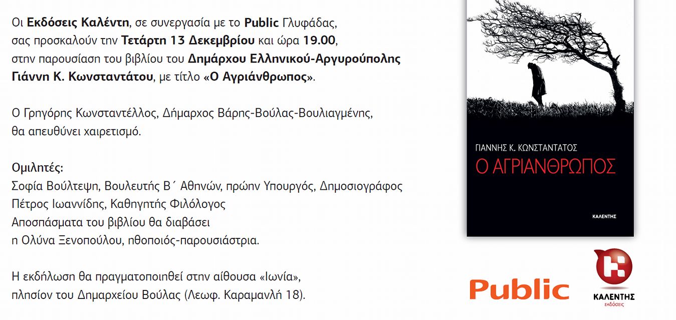 Ο «Αγριάνθρωπος» το τέταρτο βιβλίο του Δημάρχου Ελληνικού – Αργυρούπολης, που εκδόθηκε από τον εκδοτικό οίκο «Καλέντη», ως ένα διαχρονικό κλειδί άνοιξε μέσα στο χρόνο τις πόρτες του πολιτικού σκηνικού της Ελλάδας από τη δεκαετία του ’80 έως και σήμερα.