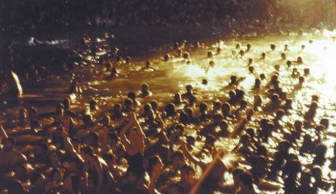 Αργά το απόγευμα της 25ης Ιουλίου, όλα ήταν έτοιμα στην πλαζ της Βουλιαγμένης. Τα 25.000 εισιτήρια, που κόστιζαν 300 δραχμές έκαστο, είχαν γίνει ανάρπαστα. Στις 7 το βράδυ άνοιξαν οι δύο είσοδοι της πλαζ και κατά χιλιάδες οι Αθηναίοι άρχιζαν να κατακλύζουν την αμμουδιά. Τότε έκαναν την εμφάνισή τους και οι πρώτοι τσαμπατζήδες, που κατέφθασαν κολυμπώντας. Μέχρι να αρχίσει η συναυλία, κάποιοι από τους συγκεντρωμένους βρήκαν την ευκαιρία να πάρουν το μπάνιο τους, ενώ κάποιοι άλλοι επιδόθηκαν στα αθλήματα της παραλίας, ρακέτες και βόλεϋ. Η όλη ατμόσφαιρα είχε κάτι το πανηγυριώτικο.