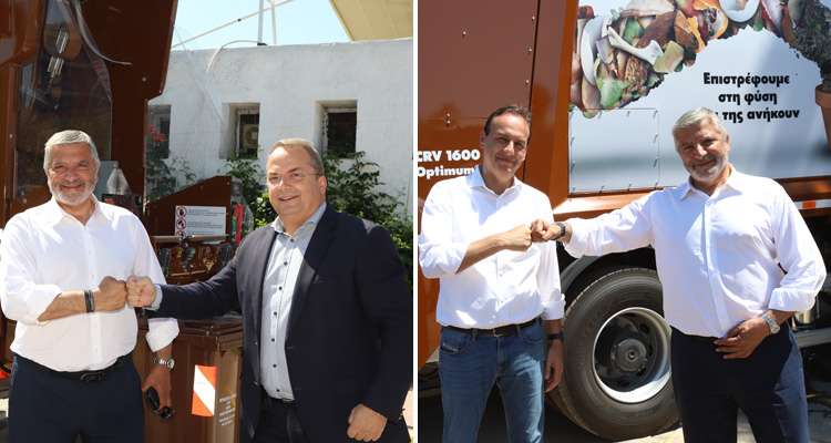 Ο Περιφερειάρχης Αττικής Γ. Πατούλης παρέδωσε απορριμματοφόρα σύγχρονης τεχνολογίας και καφέ κάδους συλλογής βιοαποβλήτων στους Δημάρχους Βάρης Βούλας Βουλιαγμένης και Γλυφάδας