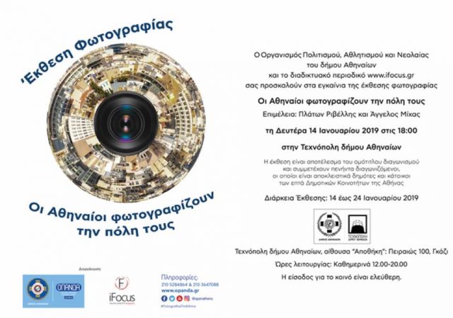 Ο διαγωνισμός Οι Αθηναίοι φωτογραφίζουν την πόλη τους διοργανώθηκε από τον Οργανισμό Πολιτισμού, Αθλητισμού και Νεολαίας του δήμου Αθηναίων και το διαδικτυακό περιοδικό www.ifocus.gr. Στην έκθεση παρουσιάζονται οι φωτογραφίες πενήντα διαγωνιζόμενων, οι οποίοι είναι αποκλειστικά δημότες και κάτοικοι των επτά Δημοτικών Κοινοτήτων της Αθήνας και φωτογράφισαν μόνο την περιοχή της Κοινότητας στην οποία ανήκουν.