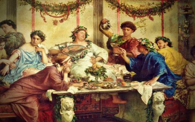Η Ρωμαϊκή Ιστορία, κατά τα έτη πριν την αυγή της Αυτοκρατορίας, όπου κυριαρχούσε ο εκφυλισμός και κάθε αμάρτημα της σάρκας θεωρούνταν λεπτότητα ήθους και πολιτισμός, ήταν γεμάτη από ονόματα Αυτοκρατόρων και αρχόντων γαστριμάργων, οι οποίοι ανήγαγαν τις περιποιήσεις της κοιλιάς τους σε μοναδικό σκοπό της ζωής τους και της εργασίας των υπηρετών τους.