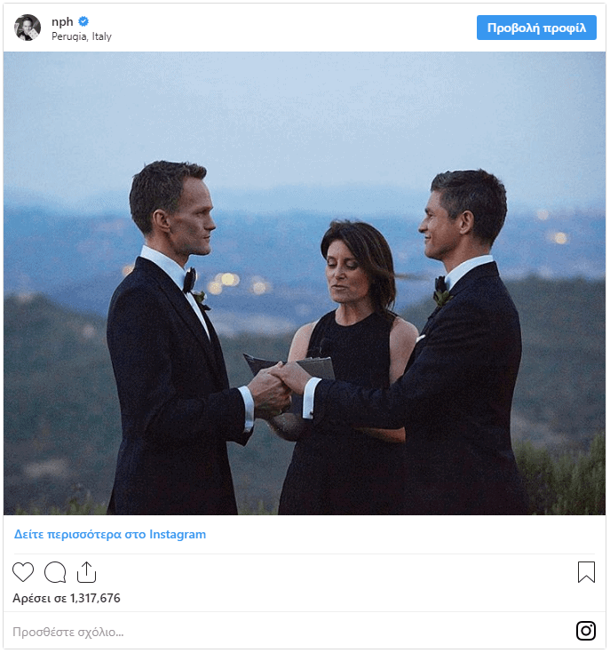 Το καλοκαίρι του 2011 πέρασε ο νόμος για τους gay γάμους στην Νέα Υόρκη και ο Neil Patrick Harris παντρεύτηκε τον αγαπημένο του σε ένα κάστρο στην Ιταλία. Σήμερα έχουν δύο πανέμορφα παιδιά.