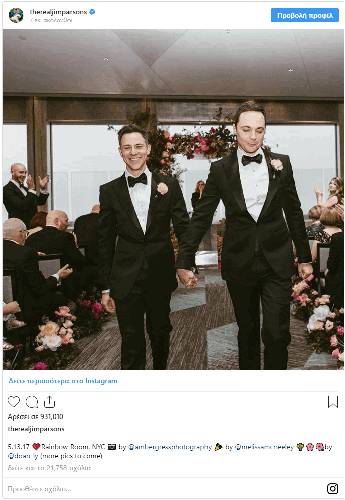 Εσκεμμένα ή μη, η πρόταση γάμου του Jim Parson στον αγαπημένο του, συνέπεσε με την πρόταση του Sheldon στην Amy, που περίμεναν οι φαν της σειράς με ανυπομονησία.