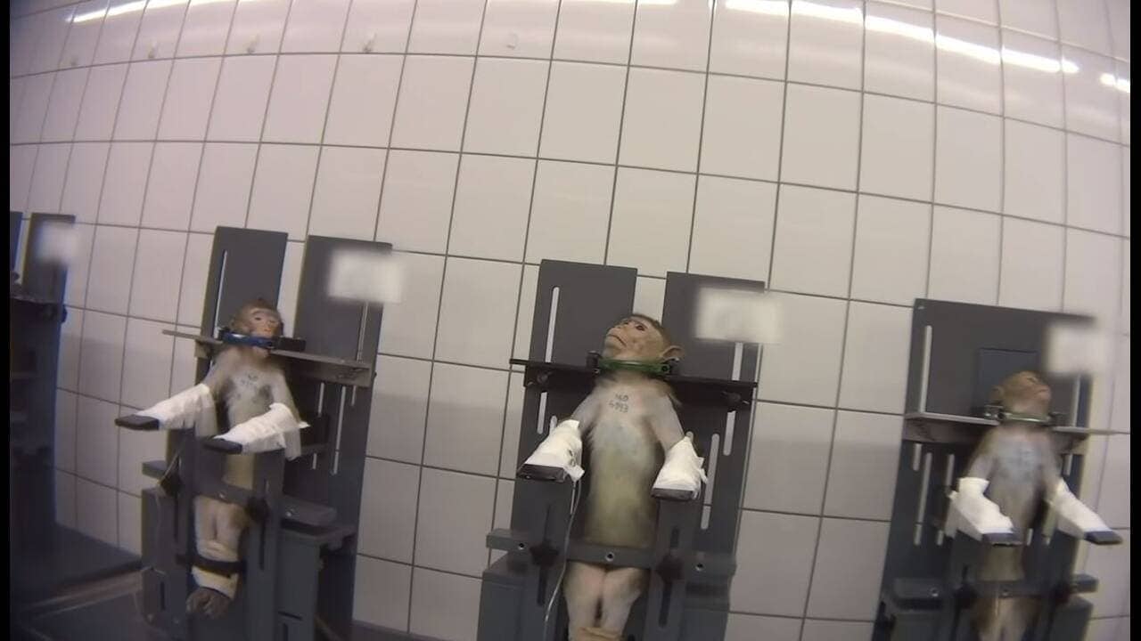 Βάναυσες εικόνες μαϊμούδων, γατών και σκύλων, τα οποία χρησιμοποιούνται ως πειραματόζωα, κατέγραψε η ΜΚΟ Cruelty Free Internation, όταν μπήκε στις εγκαταστάσεις της Laboratory of Pharmacology and Toxicology (LPT).