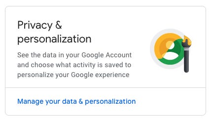 Στη συνέχεια θα πρέπει να κάνετε κλικ στο Privacy & personalization (Απόρρητο και εξατομίκευση) και αμέσως μετά στο Manage your data & personalization (Διαχείριση δεδομένων και εξατομίκευση) για να δείτε περισσότερες επιλογές.