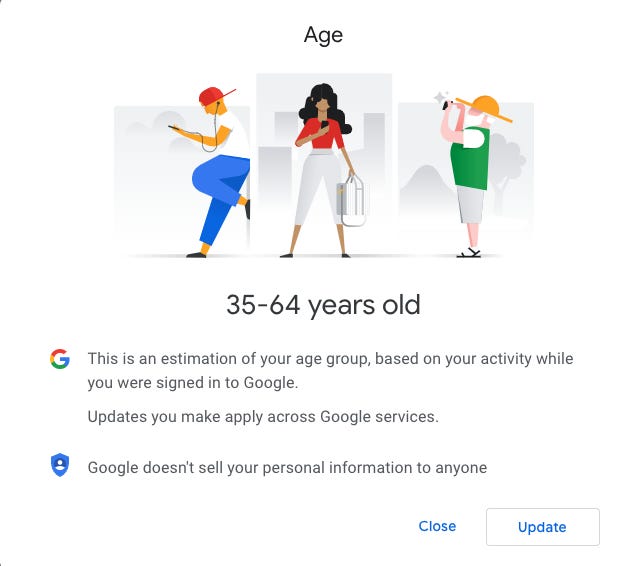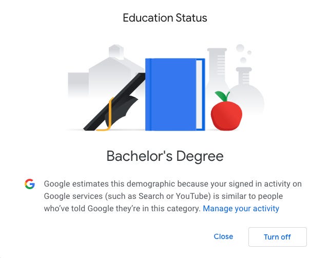 Σε αυτό το παράδειγμα, η Google είχε πέσει πολύ έξω. Καθώς ο χρήστης είναι 23 ετών και η Google τον είχε κατατάξει στην κατηγορία 35-64 ετών. Για τις περισσότερες από τις ρυθμίσεις, μπορείτε επίσης να απενεργοποιήσετε την παρακολούθηση, η οποία θα εμποδίσει την Google να χρησιμοποιεί τα ενδιαφέροντά σας για διαφημιστικούς λόγους σε όποια κατηγορία θελήσετε.