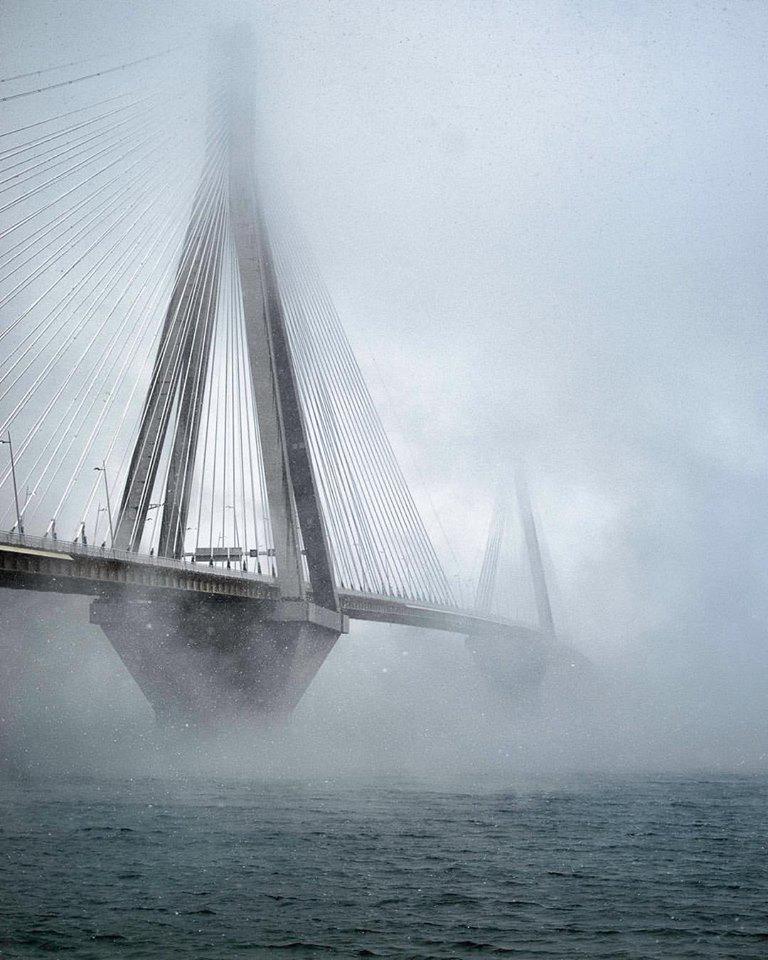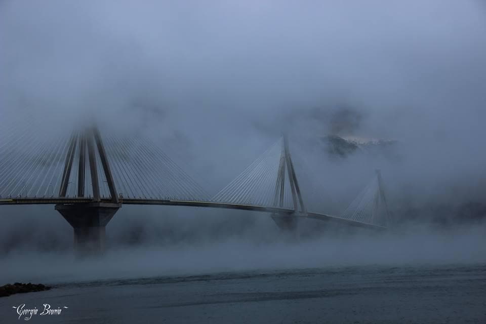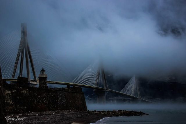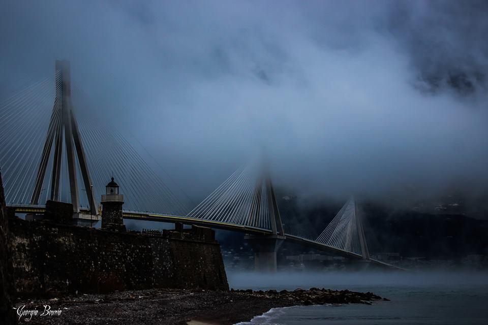Η γέφυρα Ρίου-Αντιρρίου ή «Χαρίλαος Τρικούπης» είναι επιβλητική από την κατασκευή της, ωστόσο τα… παιχνίδια με την κακοκαιρία μας χαρίζουν μια εντυπωσιακή και άγρια ομορφιά.