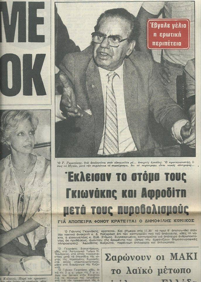 Όταν, αρκετό καιρό αργότερα, κατακάθισε η σκόνη της πολύκροτης υπόθεσης και οι φωνές φόρεσαν το μανδύα των άηχων συριγμών, ίσως ο Γκιωνάκης να κάθισε σ’ ένα απόμερο καφενεδάκι και, σε μια αντιστροφή του πιο διάσημου ρόλου του, να ήταν εκείνος που ζήτησε να του φέρουν μια πορτοκαλάδα.