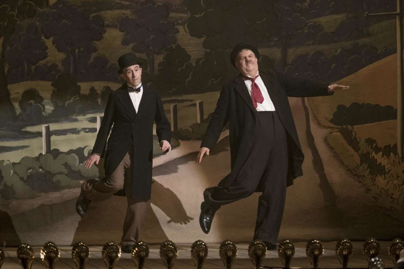 Υπάρχει για παράδειγμα, το σήμα κατατεθέν βλέμμα του Χάρντι κατευθείαν στον φακό – πρωτοπόρο για την εποχή -, κάθε φορά που ήθελε να σχολιάσει πόσο αδιόρθωτος είναι ο παρτενέρ του. Και τα χαρακτηριστικά τους καπελάκια, ενέπνευσαν πολλά θεατρικά μεταγενέστερα ανεβάσματα του έργου «Περιμένοντας τον Γκοντό» του Σάμιουελ Μπέκετ. Η επιτυχία τους ήταν τεράστια, κάτι που ο Λόρελ έπαιρνε πολύ στα σοβαρά ακόμη κι όταν είχαν περάσει οι μεγάλες δόξες, απαντώντας προσωπικά στα γράμματα των θαυμαστών που τους είχαν απομείνει. Η νέα ταινία, η οποία βγαίνει στις ελληνικές αίθουσες στις 24 Ιανουαρίου, εστιάζει εκεί ακριβώς, στη δύση της κινηματογραφικής τους καριέρας και στην άνθηση της θεατρικής τους, καθώς είχαν κάνει τη στρατηγική κίνηση να μεταφερθούν για εμφανίσεις στη Βρετανία, με τα πλήθη να συνωστίζονται προκειμένου να τους απολαύσουν για πρώτη φορά … έγχρωμους, με σάρκα και οστά.