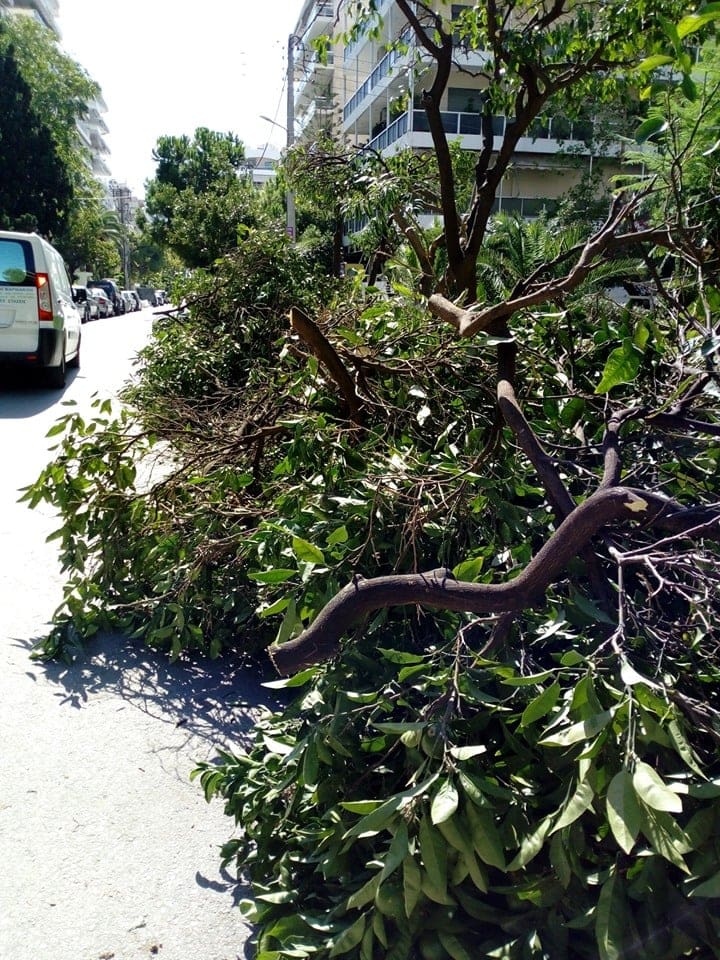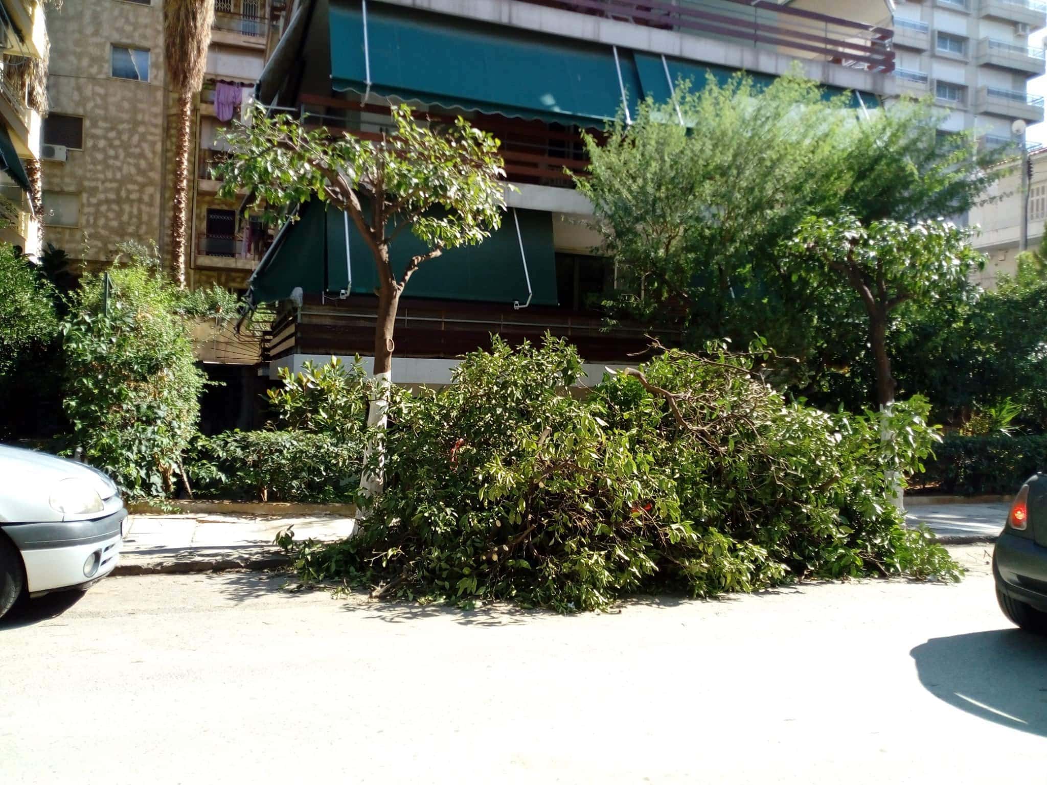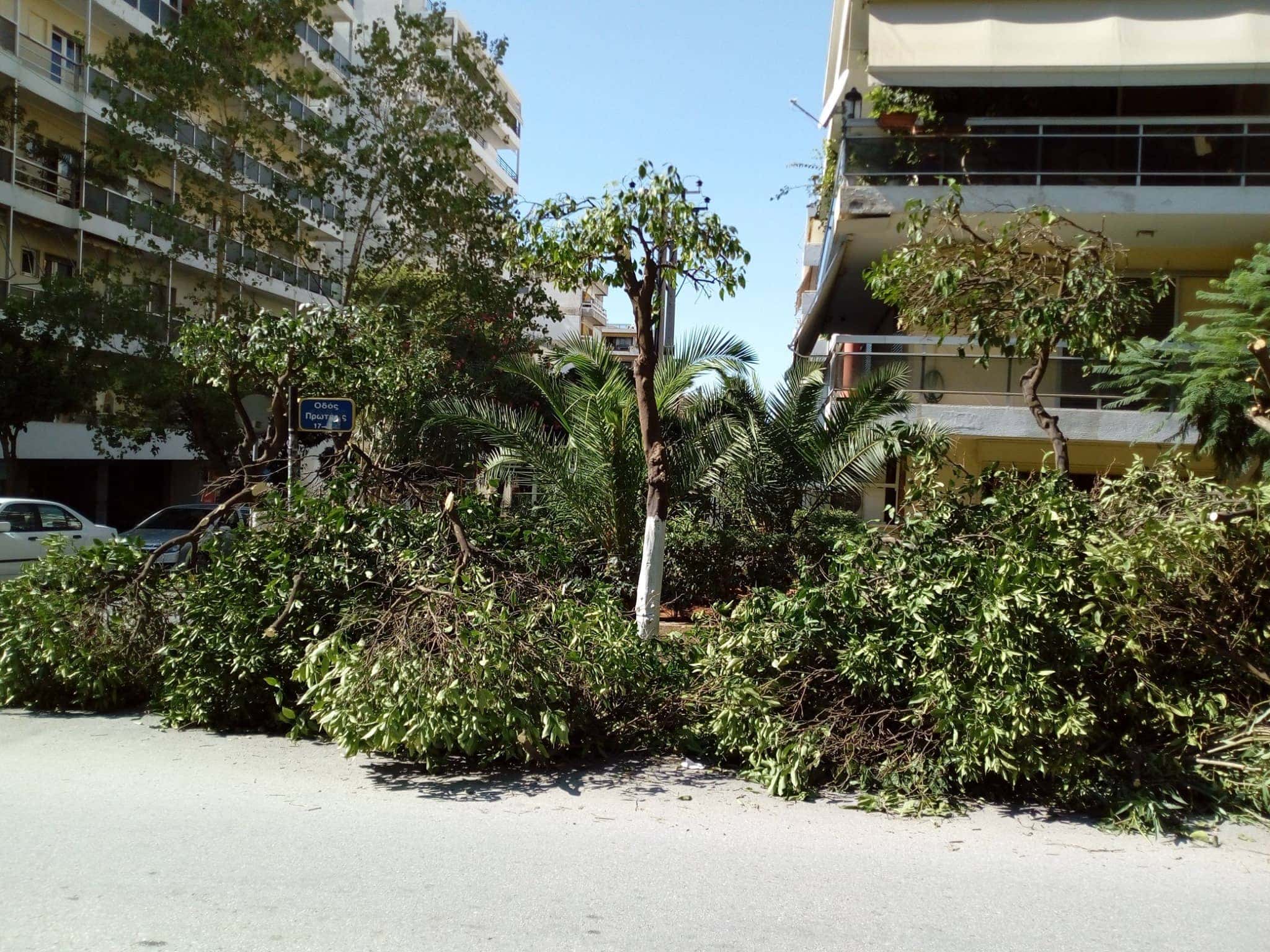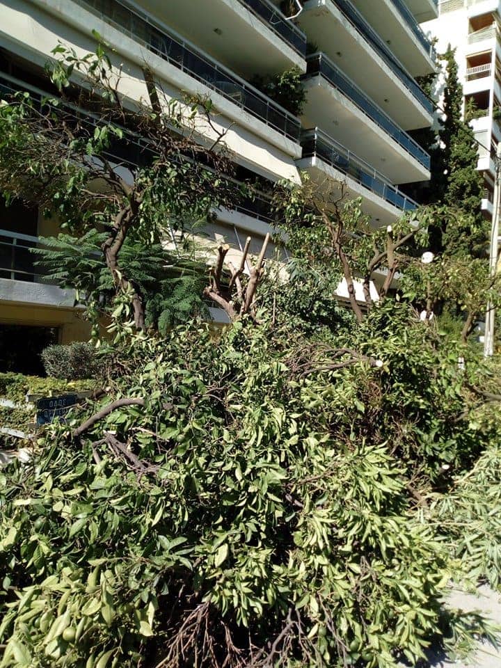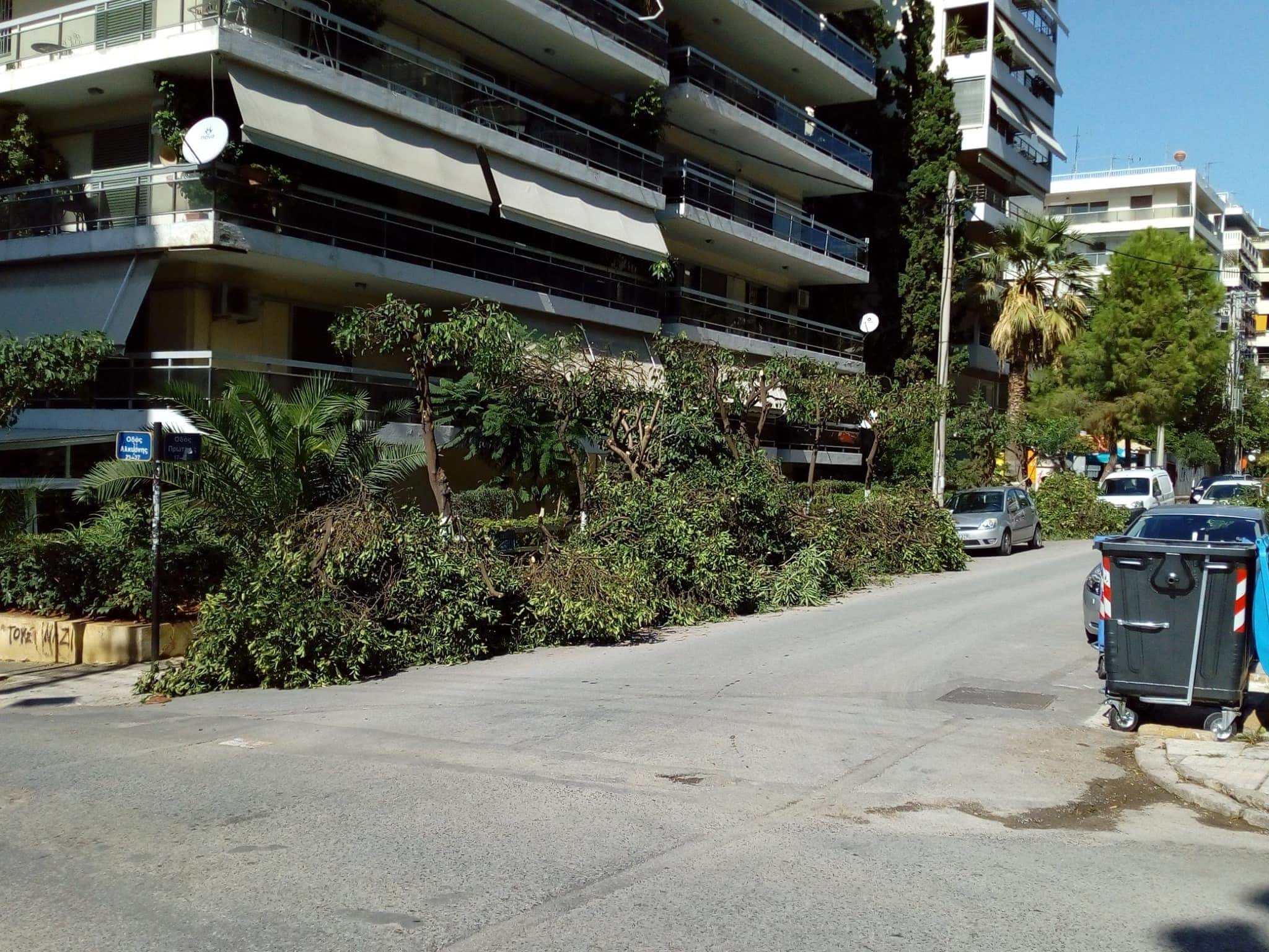 «Πρωτέως και Αλκυώνης, νέο έγκλημα με θύματα τις νεραντζιές, κουκουλωμένο με την πρόφαση του “κλαδέματος”. Κλάδεμα με το 90% του δένδρου πεταμένο κάτω, να ξεπερνά σε ύψος τα αυτοκίνητα, δε λέγεται κλάδεμα αλλά φόνος της φύσης. Ως πότε πια!!!