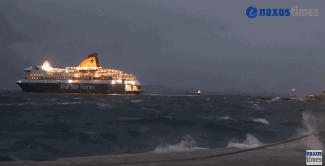 Το απόγευμα της Παρασκευής (03/01) ο καπετάνιος του “Blue Star Delos” έδωσε κυριολεκτική μάχη για να δέσει το πλοίο και να αποβιβάσει με ασφάλεια τους επιβάτες στο λιμάνι της Νάξου.