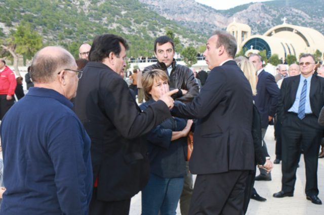 Λίγο έλειψε να πιαστούν στα χέρια ο Δήμαρχος Γλυφάδας Γ. Παπανικολάου με τον πρώην δήμαρχο Κ. Κόκκορη, χθες (5/11) στα εγκαίνια του νέου νεκροταφείου Γλυφάδας στους πρόποδες του Υμηττού.
