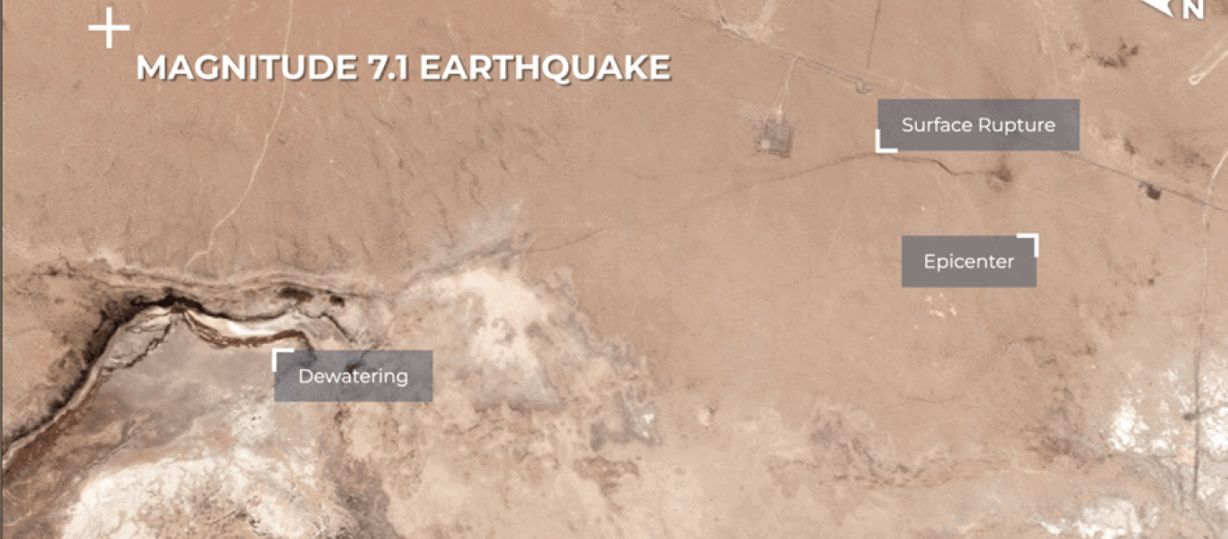 Η δύναμη που απελευθέρωσε η ισχυρή σεισμική δόνηση στην Καλιφόρνια, πριν από λίγες ημέρες, ήταν τεράστια. Η Γη κυριολεκτικά ταλαντώθηκε, με συνέπεια να «τσακίσει» σε μία έκταση αρκετών δεκάδων χιλιομέτρων, όπως αποδεικνύεται και από την εικόνα που κατέγραψε ο δορυφόρος.