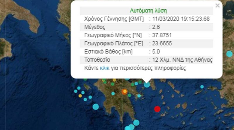 Σεισμός σημειώθηκε 12 χιλιόμετρα νότια νοτιοδυτικά της Αθήνας, στην παραλία του Ελληνικού, σύμφωνα με το Γεωδυναμικό Ινστιτούτο.