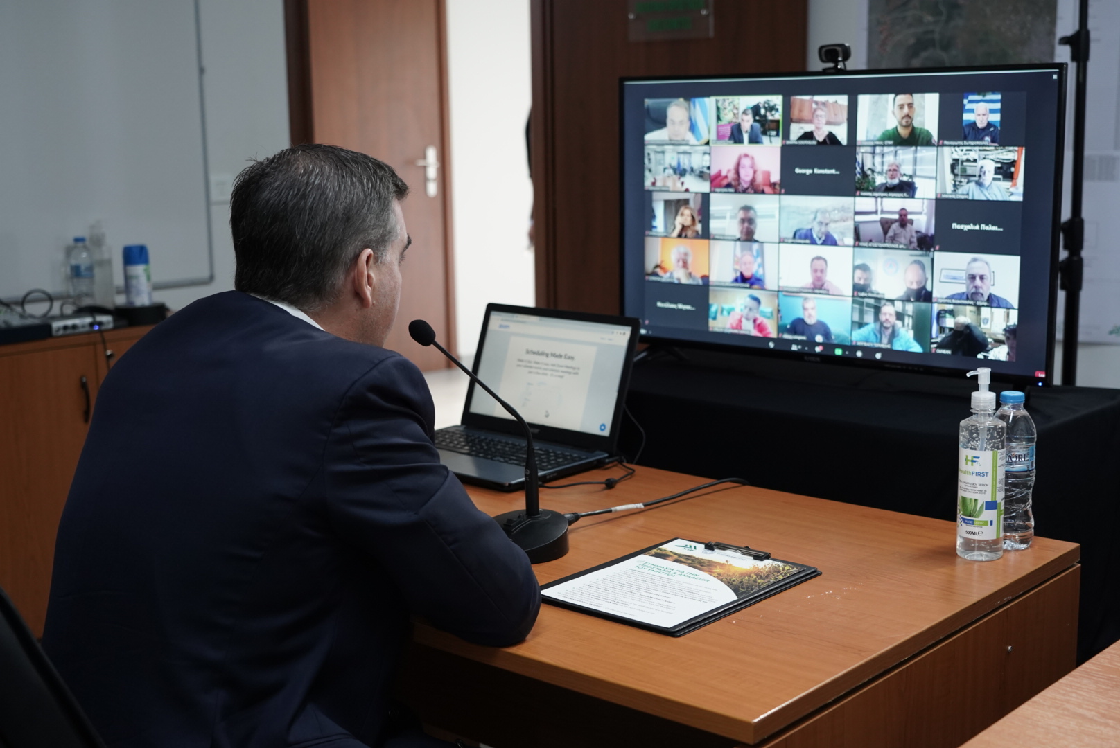 Έρχεστε στον πυρήνα, στην καρδιά του συνδέσμου μας, τόνισε ο Πρόεδρος του ΣΠΑΥ & Δήμαρχος Ελληνικού – Αργυρούπολης κ. Γιάννης Κωνσταντάτος, υποδεχόμενος τον Υπουργό στο οικολογικό και ενεργειακά αυτόνομο κτίριο του Συνδέσμου, όπου πραγματοποίησαν τηλεδιάσκεψη με τους 10 Δημάρχους του ΣΠΑΥ, μέλη του Διοικητικού Συμβουλίου και τους επικεφαλής των Εθελοντικών Ομάδων Δασοπροστασίας και Πυρόσβεσης γύρω από τον Υμηττό.