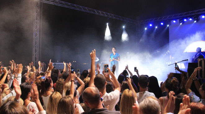 [Φωτογραφία από τη συναυλία της Άλκηστης Πρωτοψάλτη στη Βάρκιζα κατά το τελευταίο Μεσογειακό Φεστιβάλ]