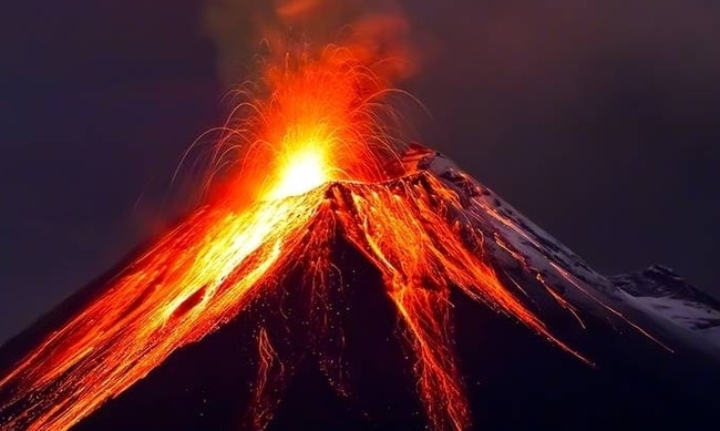Ο τηλεοπτικός φακός κατέγραψε την έκρηξη αλλά και τα ποτάμια λάβας που έρρεαν από τον κρατήρα.