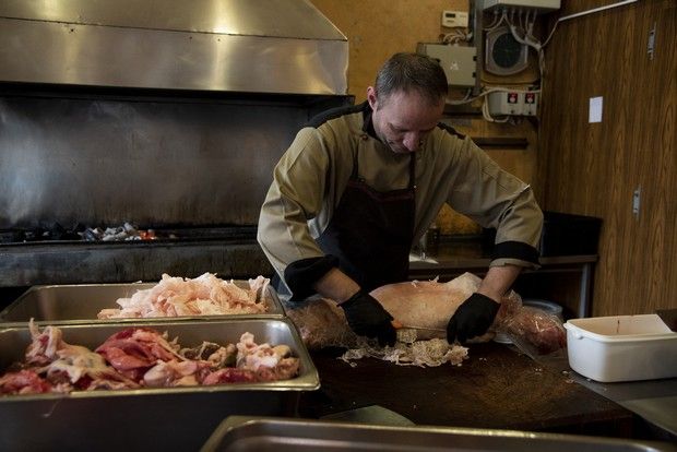 Ήταν Δευτέρα μεσημέρι, ο κόσμος ναι μεν ήταν ελάχιστος (και μεγαλύτερος σε ηλικία), αλλά οι μαγαζάτορες, όπως μας εξήγησαν, είχαν αρκετή δουλειά. Οι προετοιμασίες της Τσικνοπέμπτης είχαν ήδη ξεκινήσει τέσσερις ημέρες πριν.