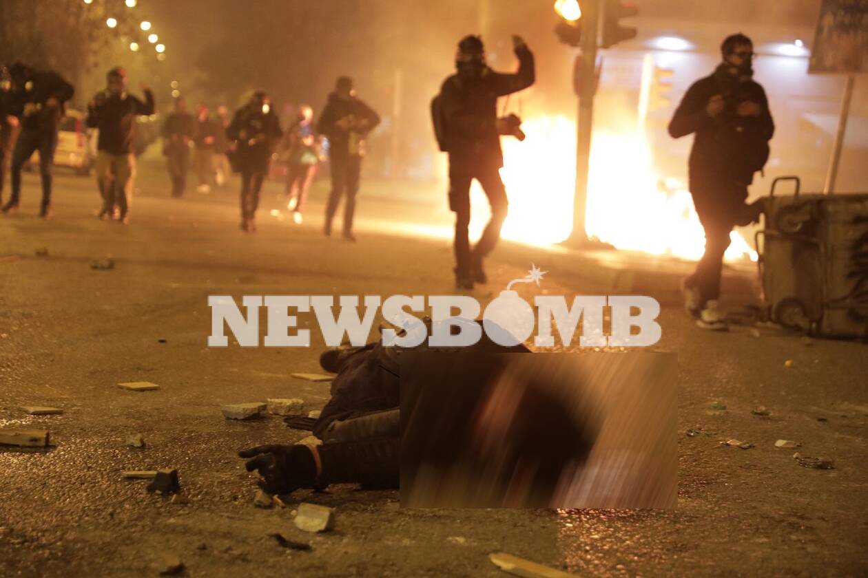 Συνάδελφοι του αστυνομικού κατάφεραν να κάνουν κλοιό γύρω του και να απομακρύνουν τους κουκουλοφόρους, καλώντας παράλληλα ασθενοφόρο.
