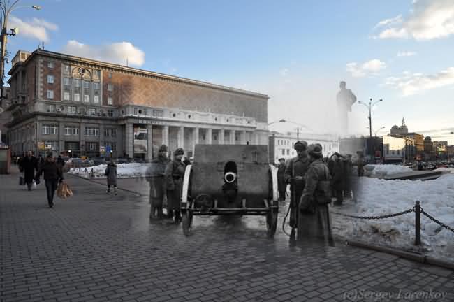 Ο Ρώσος φωτογράφος Σεργκέι Λαρένκοφ έχει αναπτύξει μία τεχνική κατά την οποία παρουσιάζει μοντέρνα μέρη σε συνδυασμό με γεγονότα του παρελθόντος. Στην προκειμένη περίπτωση έχει χρησιμοποιήσει εικόνες μεγάλων πόλεων όπως είναι σήμερα με στιγμές κατά τον δεύτερο παγκόσμιο πόλεμο. Το έργο το είναι πραγματικά εντυπωσιακό και αξίζει της προσοχής σας.