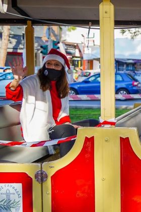 Και προσθέτει: «Δυστυχώς τα μέτρα προστασίας για τον κορονοϊό δεν επέτρεψαν ούτε στην εξαιρετική Φιλαρμονική του Δήμου μας να συμμετέχει στο δρώμενο αυτό. Χρόνια πολλά σε όλες και όλους, με υγεία κι ευτυχία». «Είναι μια ξεχωριστή εμπειρία για όλους μας η φετινή. Το τρενάκι μας δίνει λίγη χαρά που τόσο έχουμε ανάγκη.