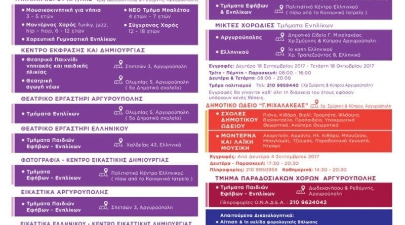 Εγγραφές: από Δευτέρα 4 Σεπτεμβρίου 2017