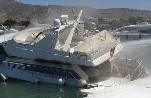 Φωτιά σε σκάφος σε μαρίνα της Γλυφάδας, εικόνες από το σημείο