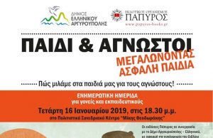 ……Πως μιλάμε στα παιδιά μας για τους αγνώστους…….. Τετάρτη 16 Ιανουαρίου 2019, ώρα 18.30