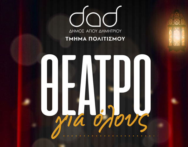 Το Τμήμα Πολιτισμού του Δήμου Αγίου Δημητρίου, σε συνεργασία με θεατρικές σκηνές της Αθήνας, καθιερώνει τη δράση: Θέατρο Για Όλους , μέσα από την οποία, οι δημότες Αγίου Δημητρίου, θα έχουν την ευκαιρία να παρακολουθούν παραστάσεις, με σημαντικά μειωμένη τιμή εισιτηρίου.