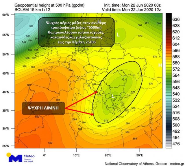Την ανάπτυξη καταιγίδων θα ευνοήσουν οι χαμηλές θερμοκρασίες που αναμένεται να επικρατήσουν τις επόμενες ημέρες στα ανώτερα στρώματα της ατμόσφαιρας της Ελλάδας, οι οποίες έχουν τη μορφή «ψυχρής λίμνης», σε συνδυασμό με τις υψηλές θερμοκρασίες κοντά στο έδαφος και τα αυξημένα ποσά υγρασίας.