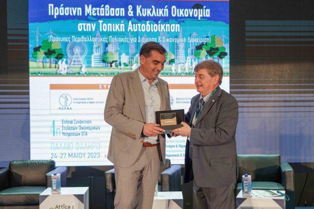 Τιμητική βράβευση για την επιτυχή εφαρμογή πολιτικών «Πράσινης Μετάβασης και Κυκλικής Οικονομίας στην Τοπική Αυτοδιοίκηση» έλαβε ο Γιάννης Κωνσταντάτος από τον κ. Μιχάλη Χρηστάκη, πρόεδρο της Πανελλήνιας Ένωσης «Κλεισθένης», στο πλαίσιο της 2ης Attica Green Expo