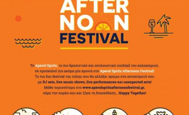 Το Aperol Spritz Afternoon Festival επιστρέφει και πάλι, για να αλλάξει το χρώμα στα απογεύματά μας! Μετά το επιτυχημένο φετινό πρώτο wave στο κέντρο της Αθήνας, το πιο απολαυστικό cocktail Aperol Spritz μας προσκαλεί και πάλι καθημερινά 19.00 με 22.00, σε ένα υπέροχο afternoon festival διασκέδασης αυτή τη φορά σε άλλη γειτονιά! Έως και τις 4 Ιουλίου, το Aperol Spritz Afternoon Festival αφήνει την καρδιά της πόλης και μεταφέρεται στα Νότια Προάστια για να δώσει χρώμα στα απογεύματα όσων βρεθούν στη Γλυφάδα! Live μουσική, DJ sets, cool happenings και πολλές άλλες εκπλήξεις θα περιλαμβάνει η «συνάντηση» με το πιο απολαυστικό cocktail Aperol Spritz στα καλοκαιρινά hot spots της περιοχής.