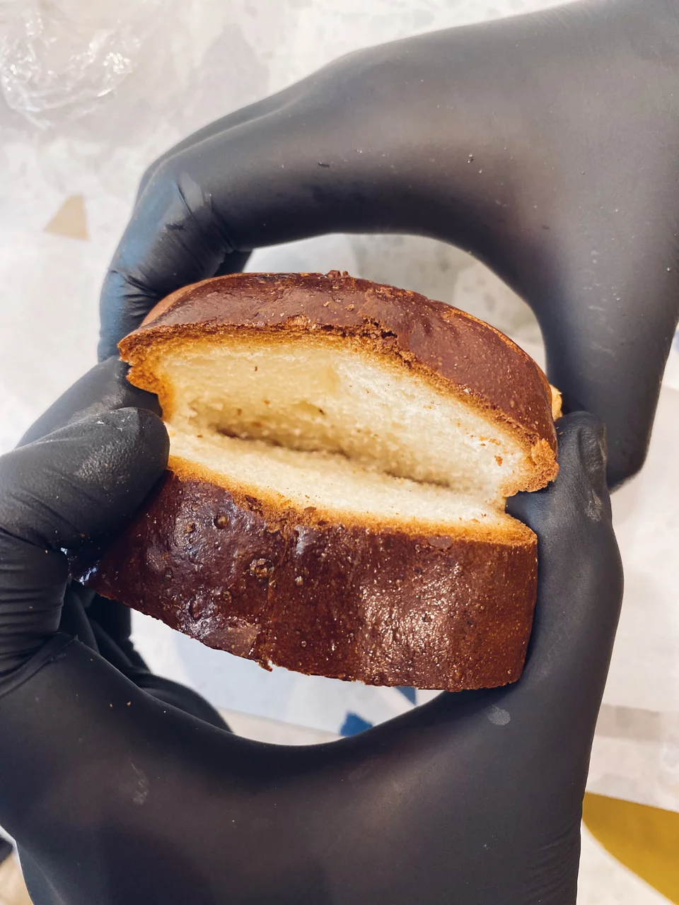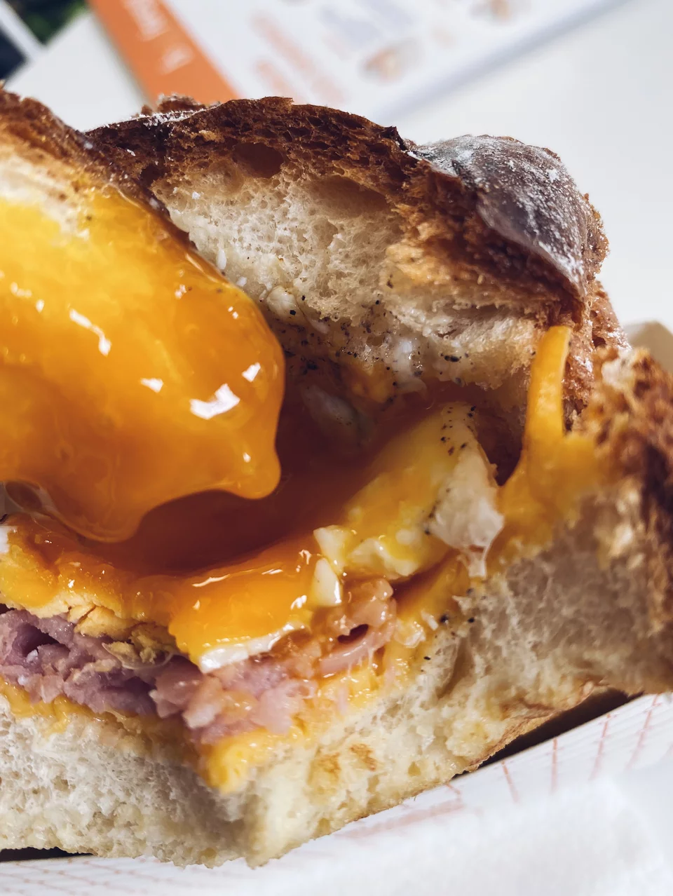 Εμείς δοκιμάσαμε δύο από τα signature σάντουιτς του Begg for Egg, αυτά που είναι και τα πιο δημοφιλή από τον κατάλογό του και ήταν καταπληκτικά: Το French Toast που έχει ψωμί brioche με αυγό τηγανητό, ζαμπόν, cheddar, Begg for Egg sauce (ελαφρώς πικάντικη με μαγιονέζα), Egg sauce (ελαφρώς γλυκιά με μαγιονέζα) και ζάχαρη άχνη.