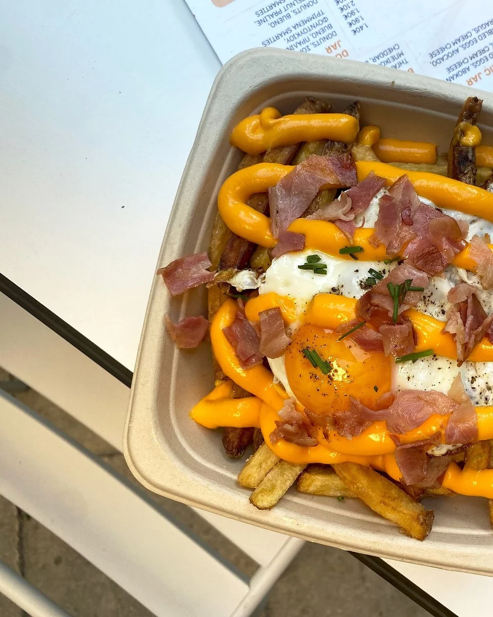 Πατάτες τηγανητές με αυγά, τσένταρ και μπέικον / Φωτογραφία: beggforegg.athens/Ιnstagram