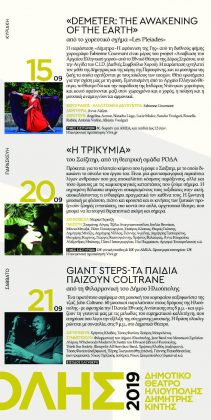 Μοναδική εμπειρία, όμως, αναμένεται να προσφέρει και η χοροθεατρική παράσταση «Demeter: the awakening of the earth», από τη διεθνούς φήμης χορογράφο Fabienne Gourmont και το χορευτικό σχήμα «Les Pleiades»
