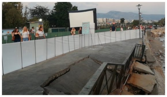 Ούτε καν μπήκαν στον κόπο να βάλουν μια προειδοποιητική πινακίδα για τον κόσμο, που κάνει βόλτες στην παραλία, η τρύπα βρίσκεται δίπλα στο στολίδι της πόλης, το Cine Άλιμος.