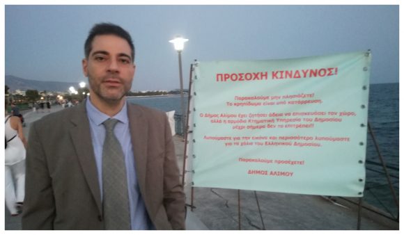 «Βρισκόμαστε στον χώρο του παραλιακού κρηπιδώματος, ενός χώρου που παρακαλάμε το Ελληνικό Δημόσιο, την Κτηματική Υπηρεσία, το υπουργείο Οικονομικών, να μας επιτρέψουν να το επισκευάσουμε εμείς ο δήμος με δικά μας έξοδα και δική μας μέριμνα και δεν μας αφήνουν» λέει ο δήμαρχος Αλίμου Ανδρέας Κονδύλης, στο ΝΟΤΙΑ.GR.
