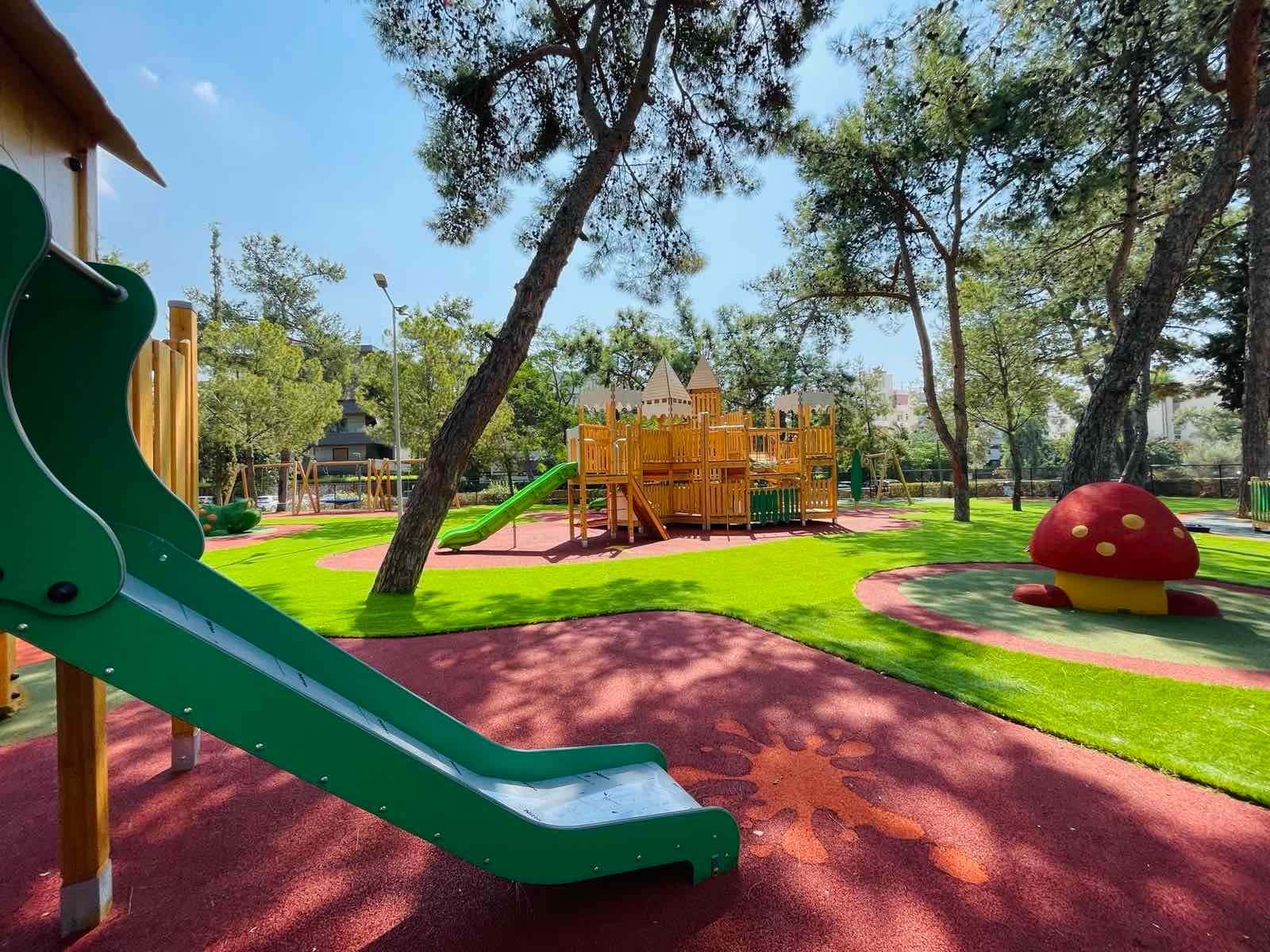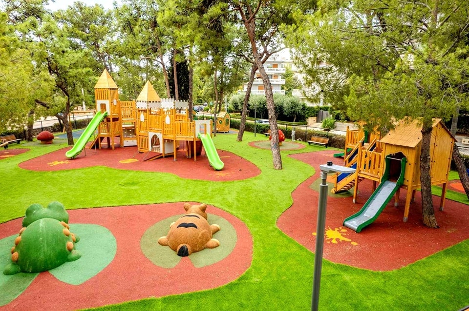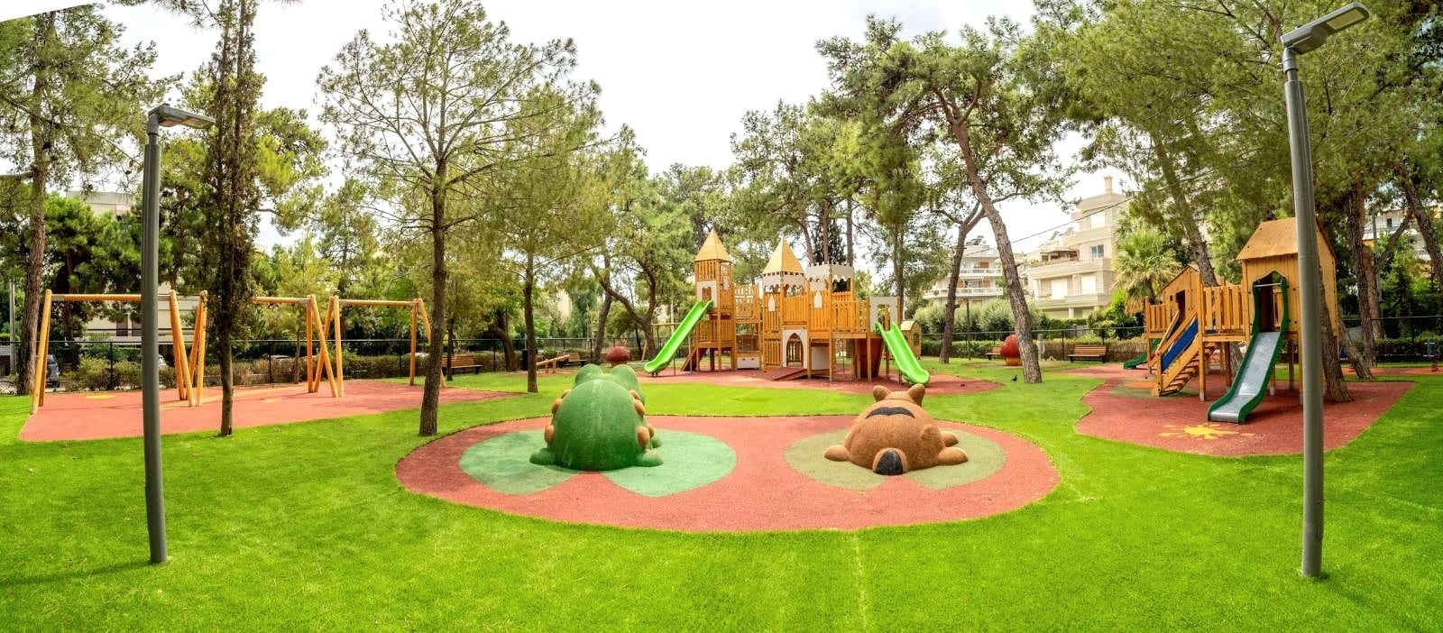 Με πολύ πράσινο και υπέροχα παιχνίδια. Πάντα με τη μέγιστη προσοχή σε κάθε λεπτομέρεια και σε κάθε πρόβλεψη που απαιτείται για την πιστοποίηση και την ασφάλεια των παιδιών μας.
